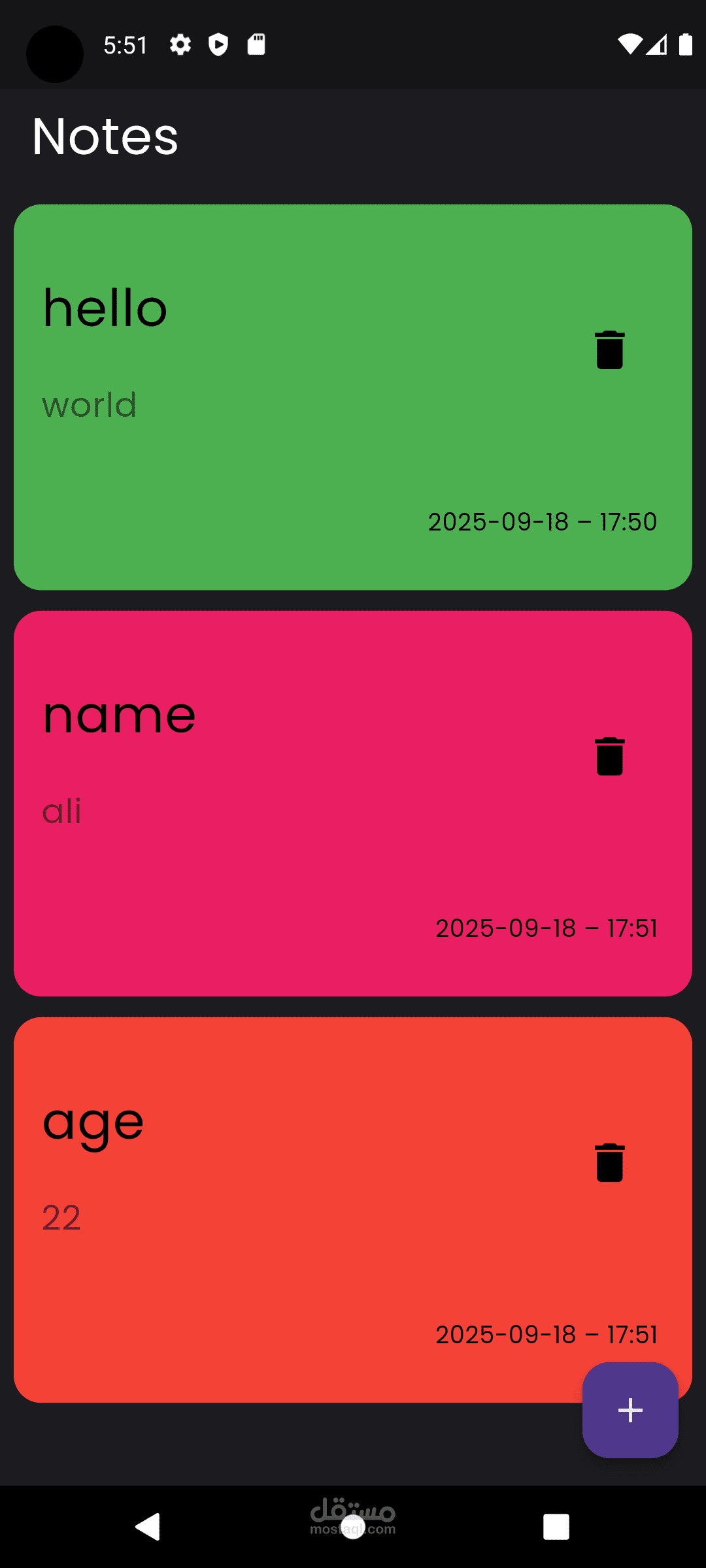 تطبيق عملي يساعد المستخدم على تدوين الملاحظات وتنظيم أفكاره بشكل مرن وسريع. يتيح للمستخدمين إضافة الملاحظات، واختيار ألوان مختلفة لكل ملاحظة لسهولة التمييز والتصنيف. كما يوفّر ميزة حذف الملاحظات غير المرغوب بها للحفاظ على تنظيم واجهة المستخدم.