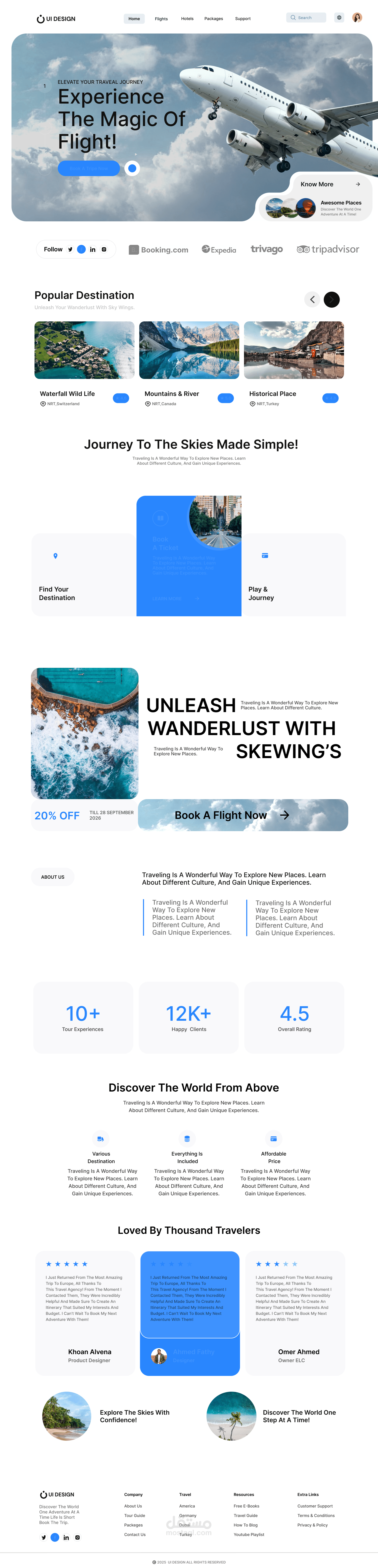 قمت بتصميم موقع عصري وسهل الاستخدام لحجز تذاكر الطيران والرحلات السياحية. الهدف من المنصة هو جعل عملية الحجز أكثر سهولة وسرعة وجاذبية للمستخدمين.