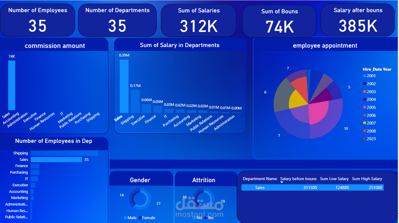 تنظيف و تحليل و عمل داش بوورد لداتا موارد بشريه لاحدي الشركات HR dashboard