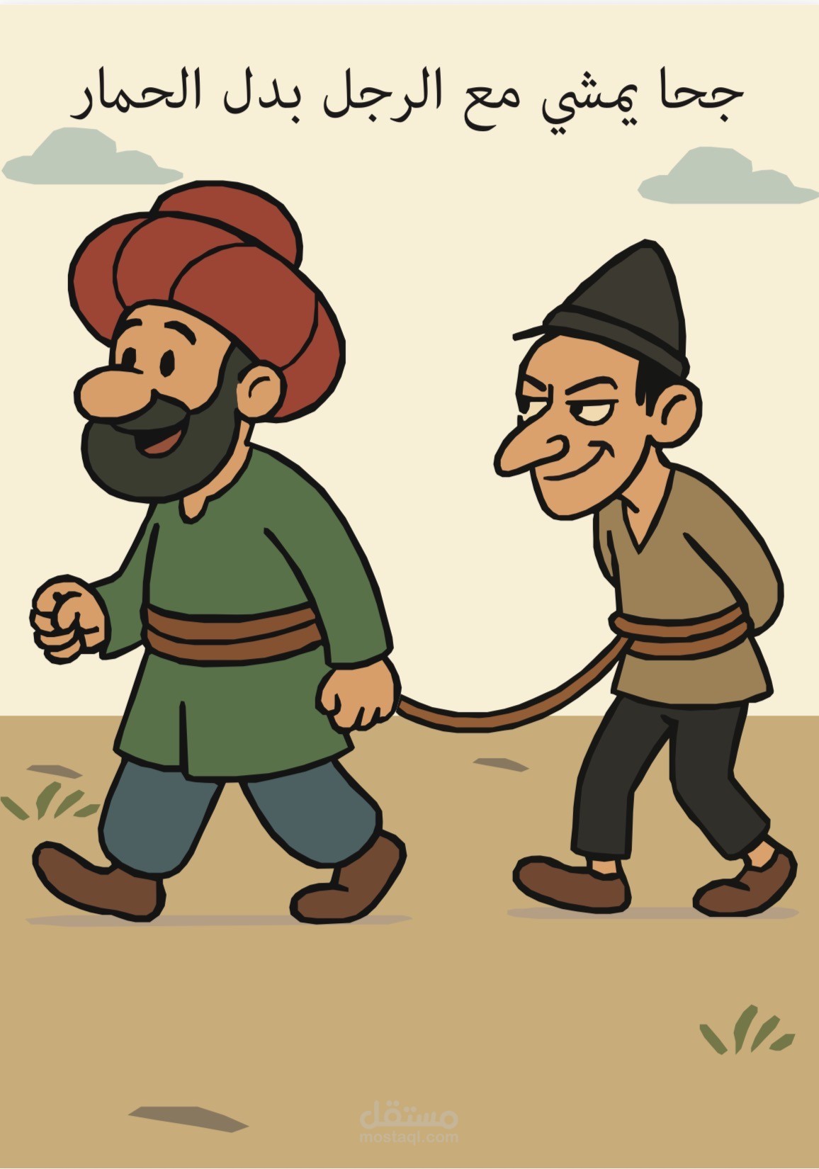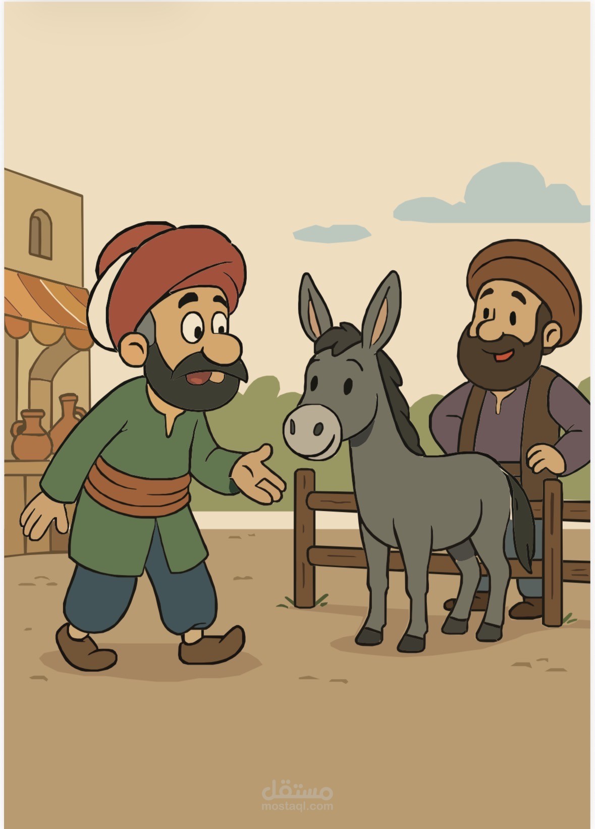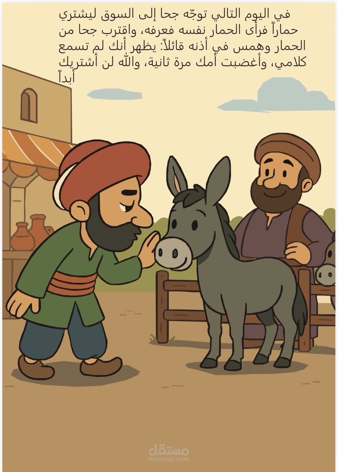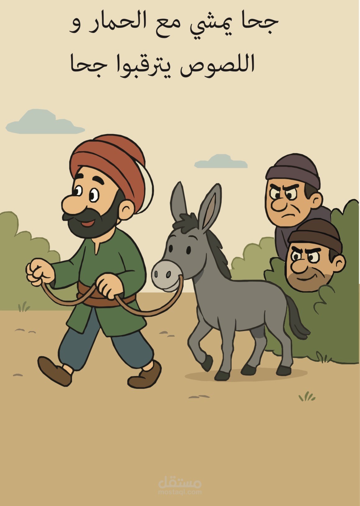 مجموعة من البوسترات التوضيحية الموجهة للأطفال، تجسّد قصة جحا والحمار بأسلوب بصري مبسط ومرح. يهدف العمل إلى جذب انتباه الأطفال ومساعدتهم على فهم أحداث القصة والعبرة منها بطريقة سهلة، ممتعة، وجذابة بصريًا.