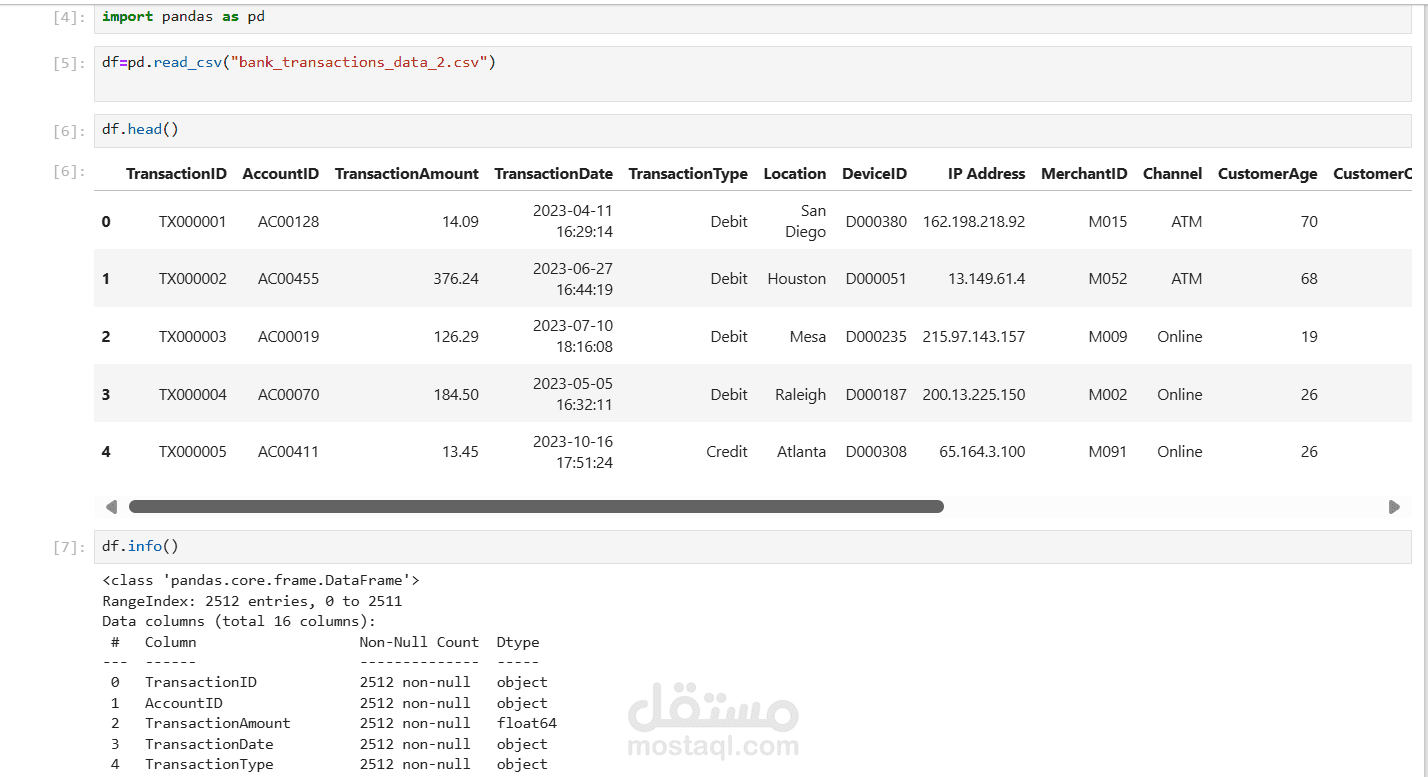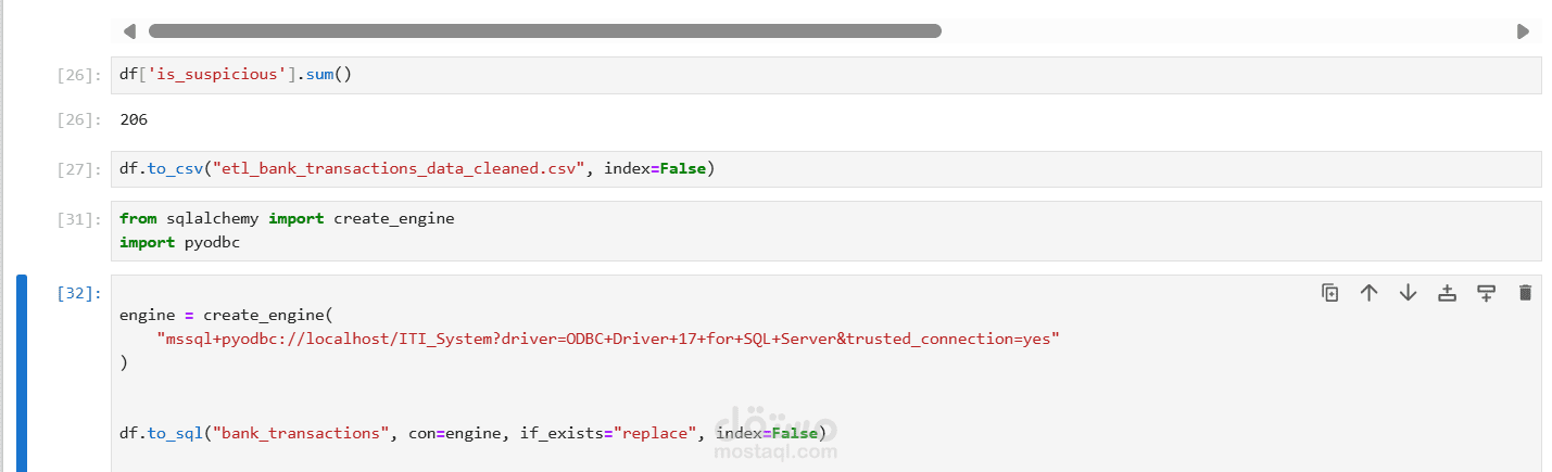 قمت بتنفيذ مشروع ETL (Extract – Transform – Load) لبيانات معاملات بنكية، حيث قمت باستخراج البيانات من ملفات Excel، ثم تنظيفها ومعالجتها (إزالة القيم المفقودة، تعديل الأعمدة والتواريخ) باستخدام Python وSQL. بعد ذلك قمت بتحميل البيانات إلى قاعدة بيانات (Database) لتكون جاهزة للتخزين والتحليل، ثم ربطتها بـ Power BI لتصميم لوحة معلومات تفاعلية (Dashboard) تعرض مؤشرات مهمة مثل عدد العمليات المالية في كل بلد، توزيع المعاملات، والاتجاهات الزمنية، مما يسهل فهم البيانات ودعم عملية اتخاذ القرار.