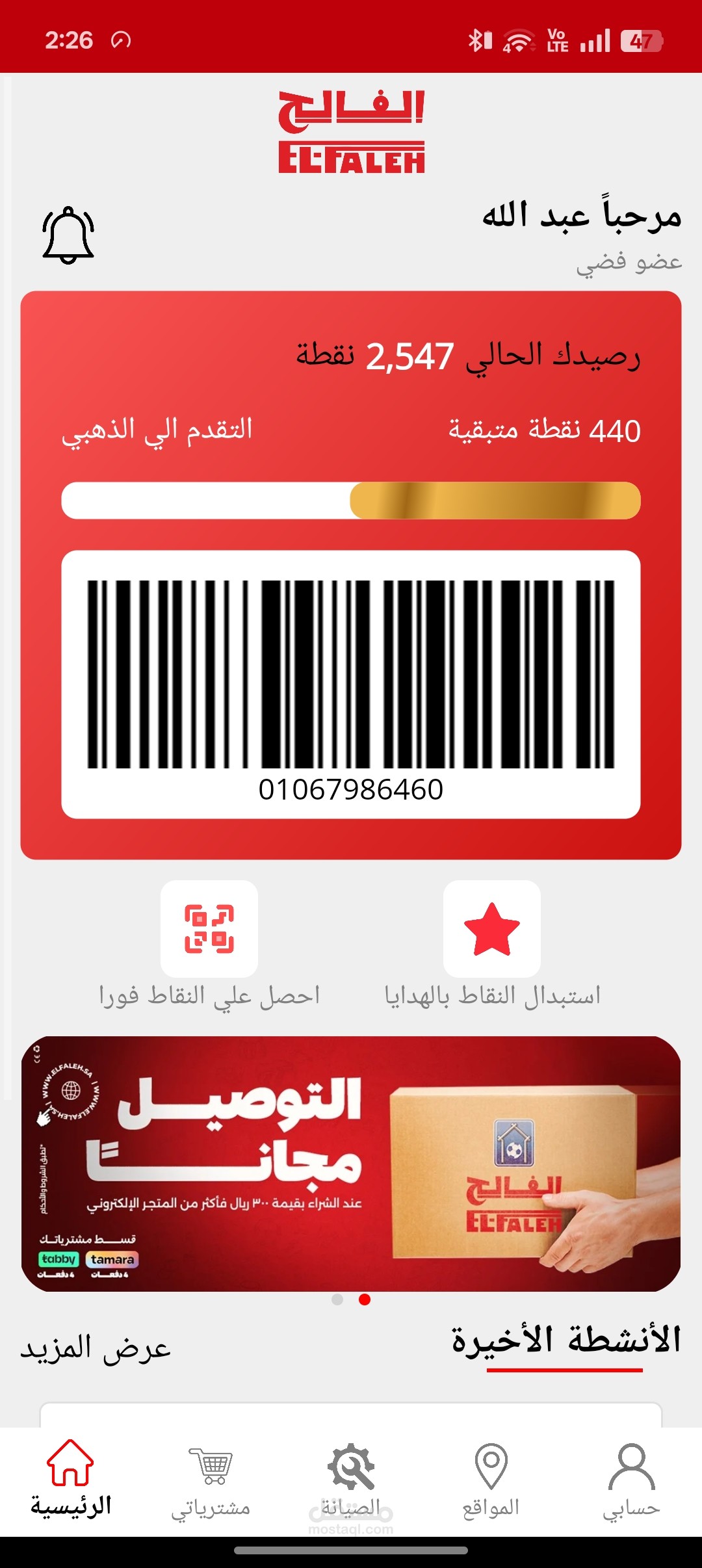 برنامج لمتجر اجهزة رياضية يقوم بأضافة لك نقاط عند شراء من المتجر و يقوم بحفظ الفواتير السابقة و يظهر مواقع الفروع الخاصة بالمتجر و يتيح لك طلب صيانة للمنتجات و يقوم بحساب النقاط عن طريق مسح الباركود الخاص بك عند شراء شئ من المتجر عند الكاشير