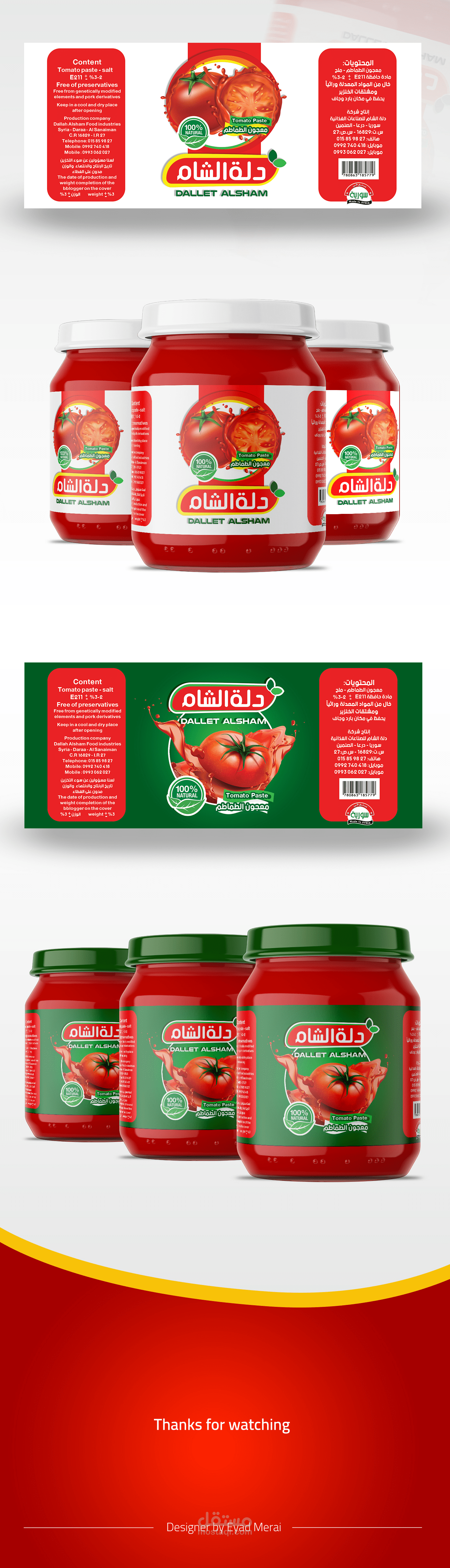 تم تصميم الشعار بالإضافة إلى منتجات معجون الطماطم لشركة دلة الشام