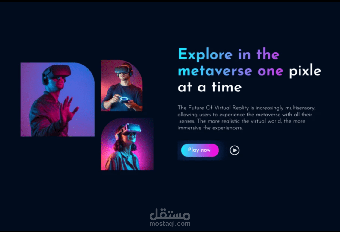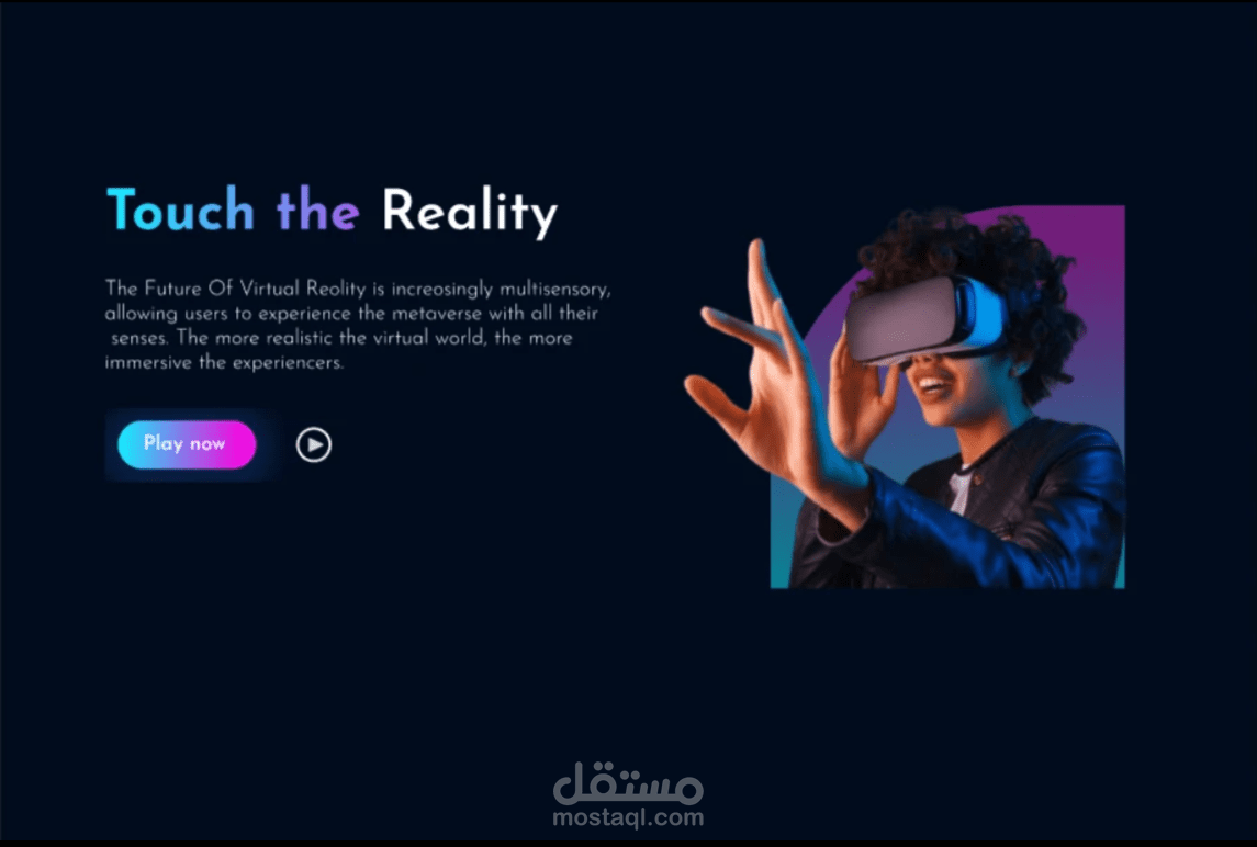 تصميم موقع ويب بتجربة تفاعلية مستوحاة من تقنيات الواقع الافتراضي (VR)، يهدف إلى تقديم تجربة غامرة للمستخدم تجمع بين الحداثة وسهولة الاستخدام.