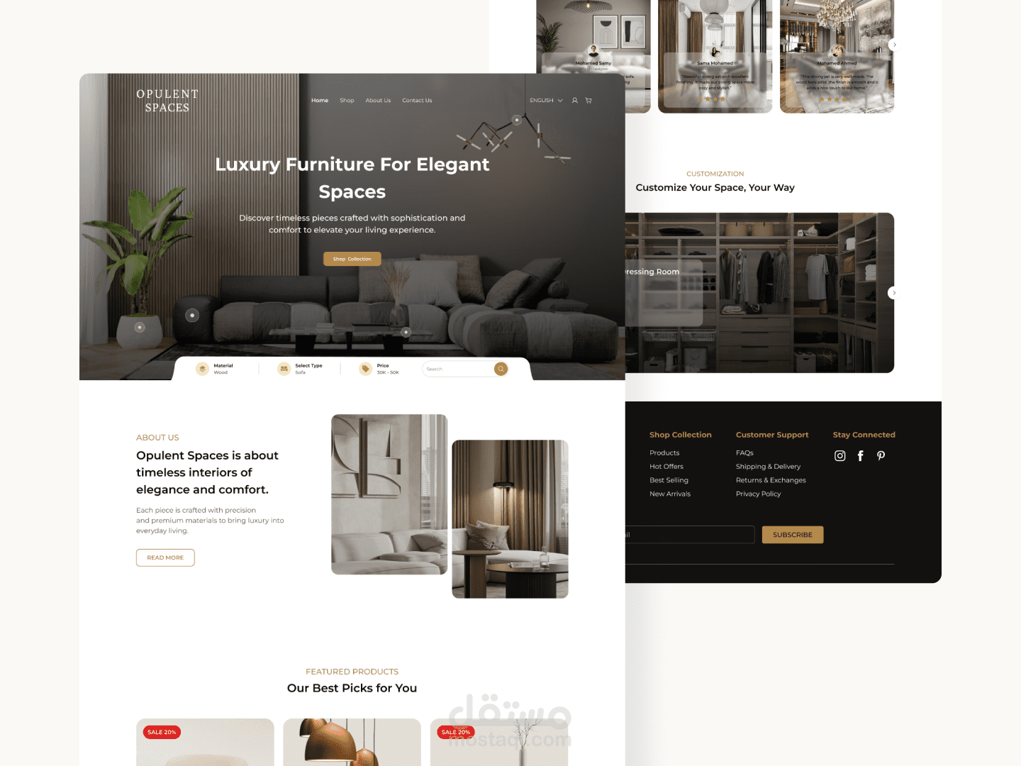 قمت بتصميم واجهات مستخدم لموقع تجارة إلكترونية متخصص في بيع الأثاث مع التركيز على تجربة مستخدم سلسة وأسلوب بصري عصري وأنيق. وحرصت على تطبيق UI Patterns متنوعة لضمان سهولة الاستخدام والتصفح والشراء بسرعة وسلاسة.