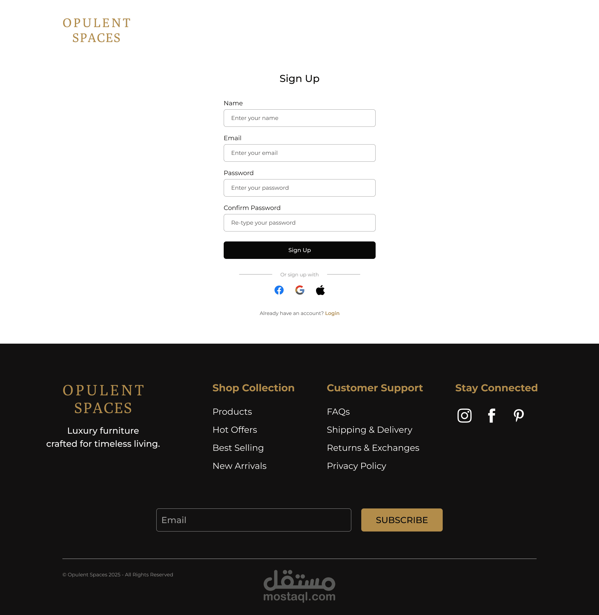 - صفحات الحساب (تسجيل دخول – إنشاء حساب – استعادة كلمة المرور)