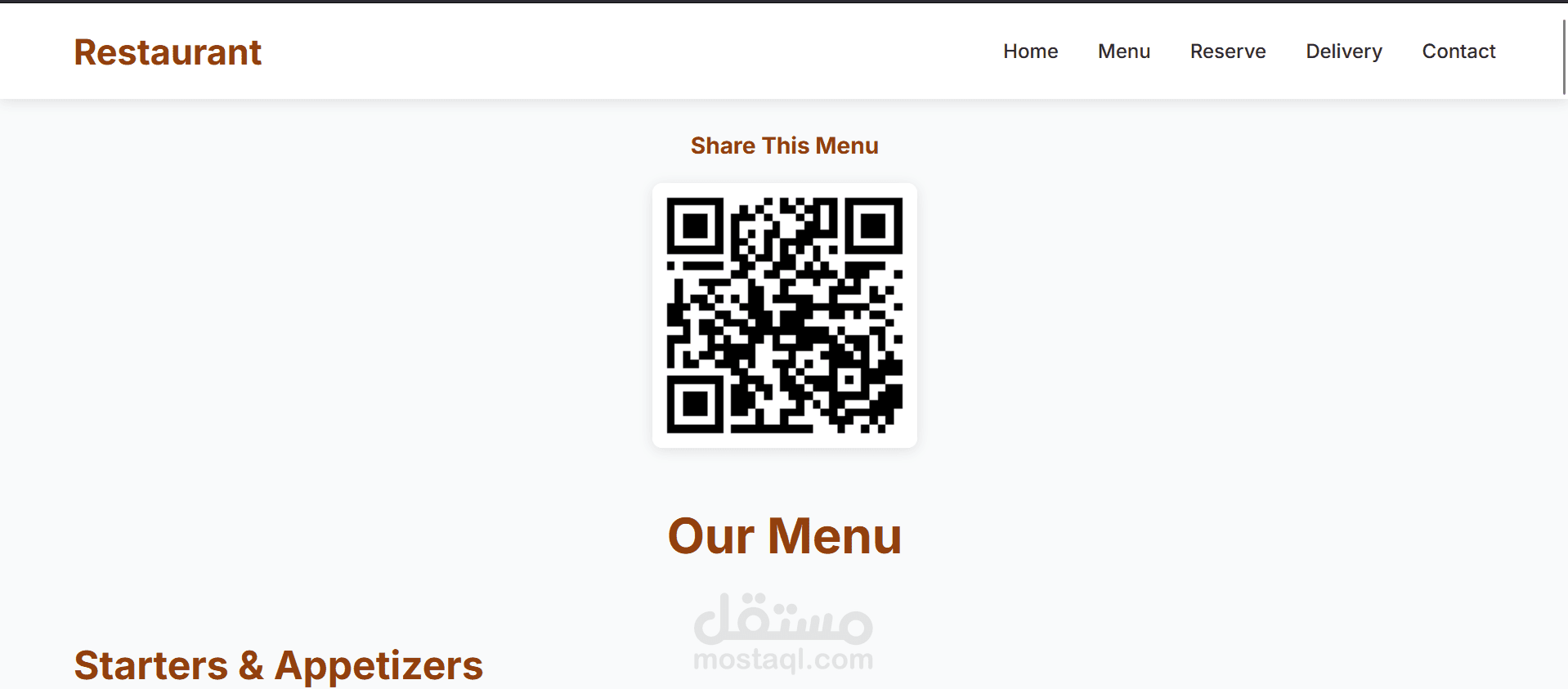 This is a fully functional restaurant website built with HTML and CSS, designed to provide an excellent online presence for a dining establishment. The website combines traditional web design with modern QR code technology to create a seamless customer experience.