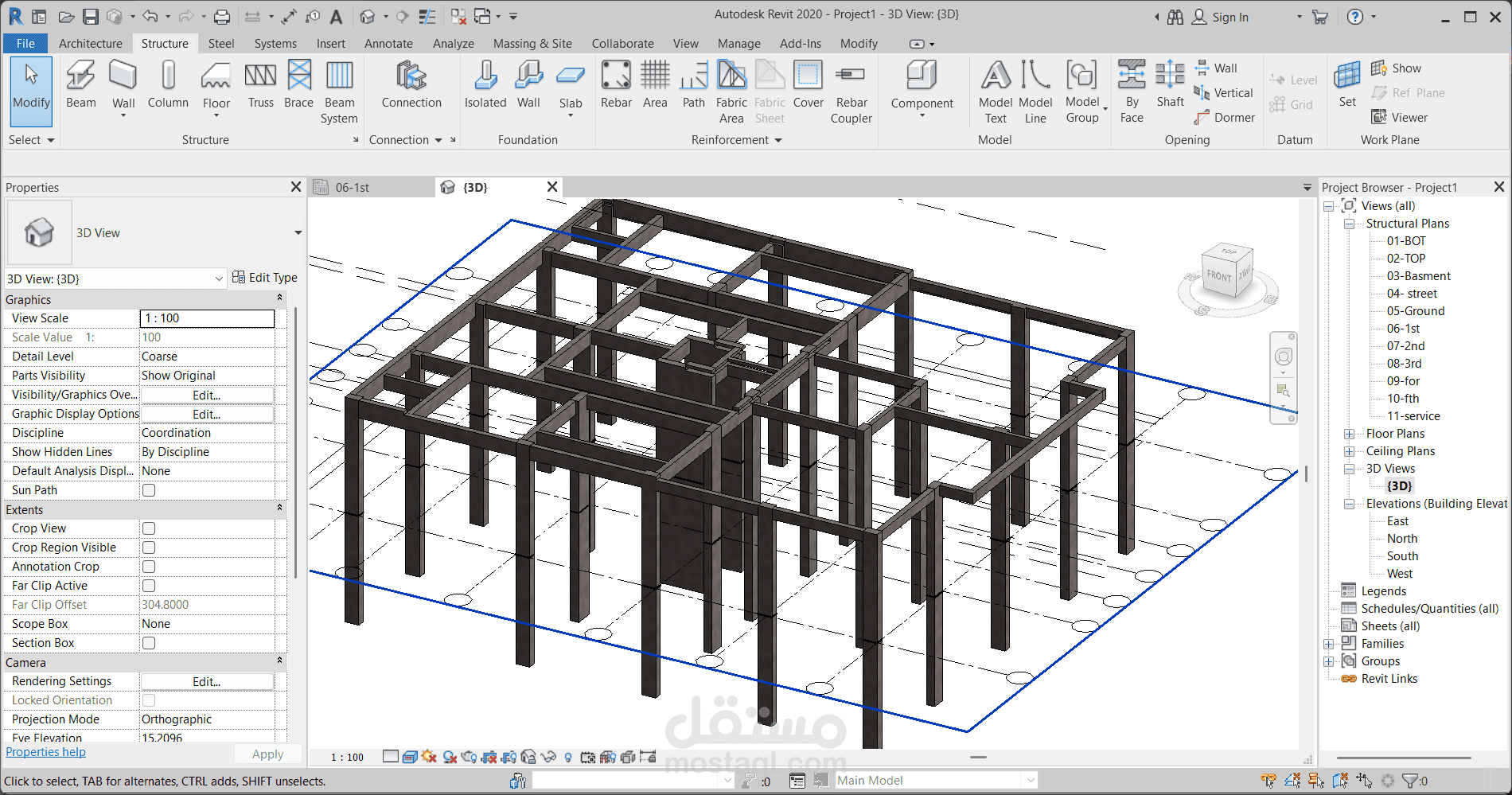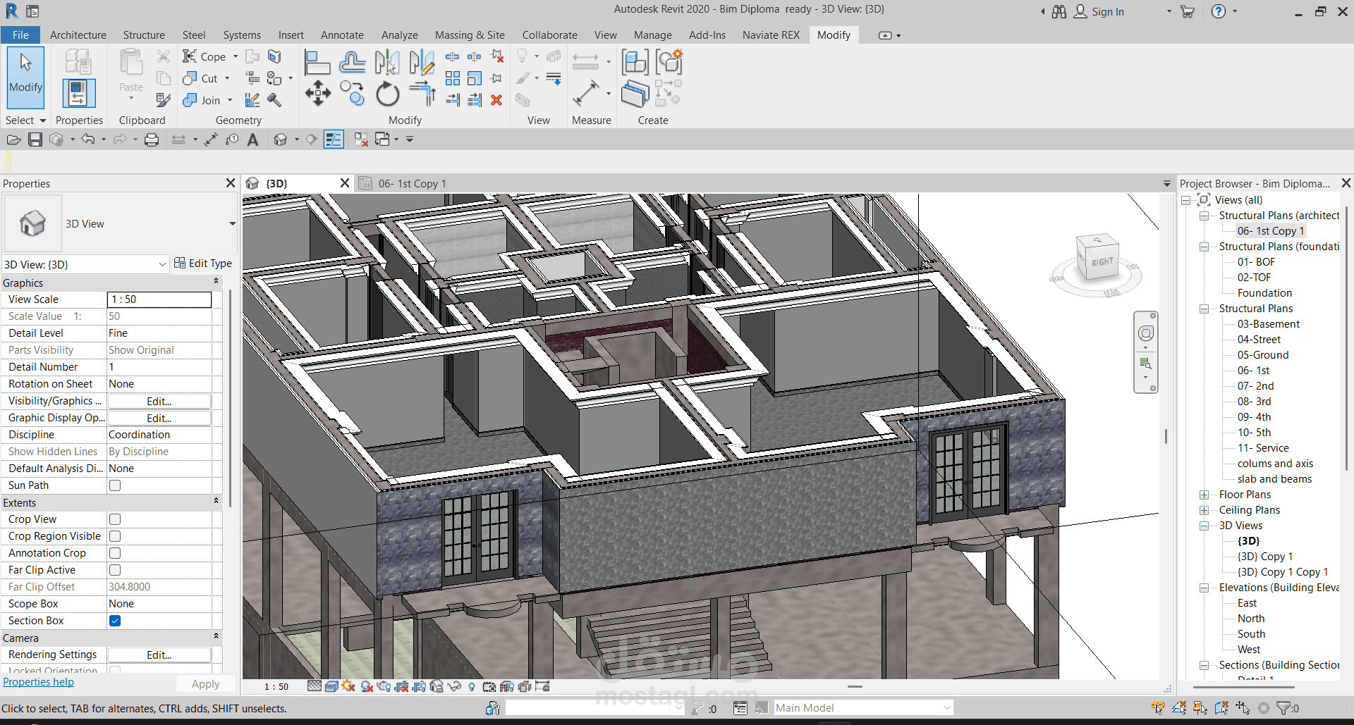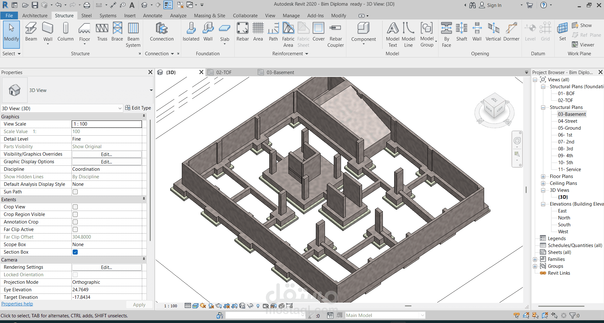 إنشاء عمارة سكنية 3D علي برنامج Revit بواسطة plans رسمتها مسبقا علي برنامج AutoCAD وتم حصر الكميات