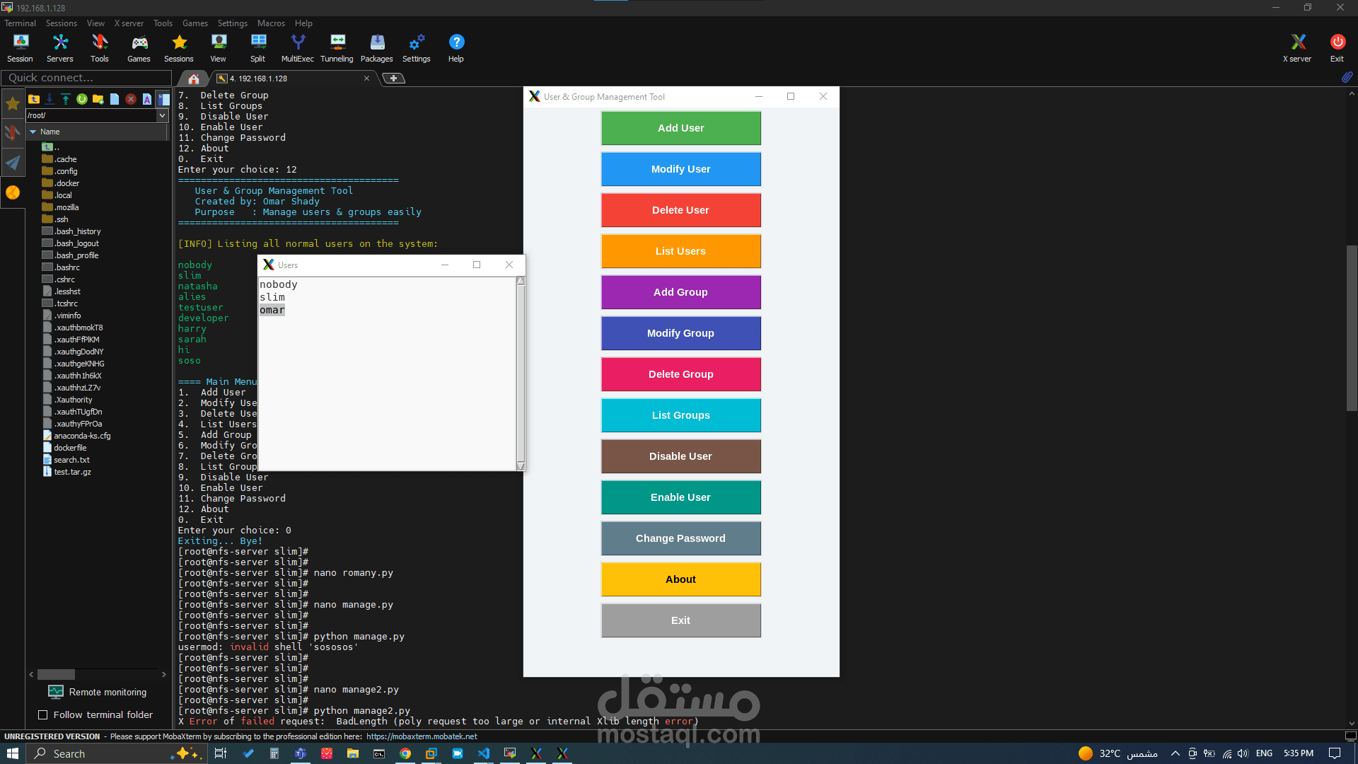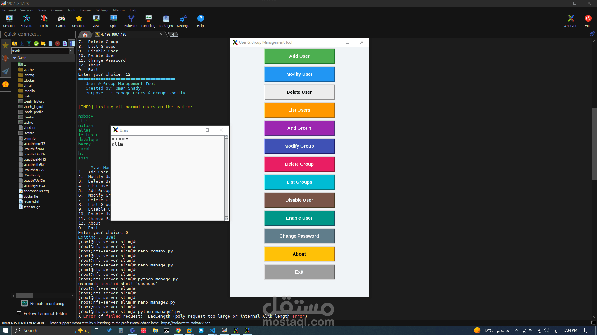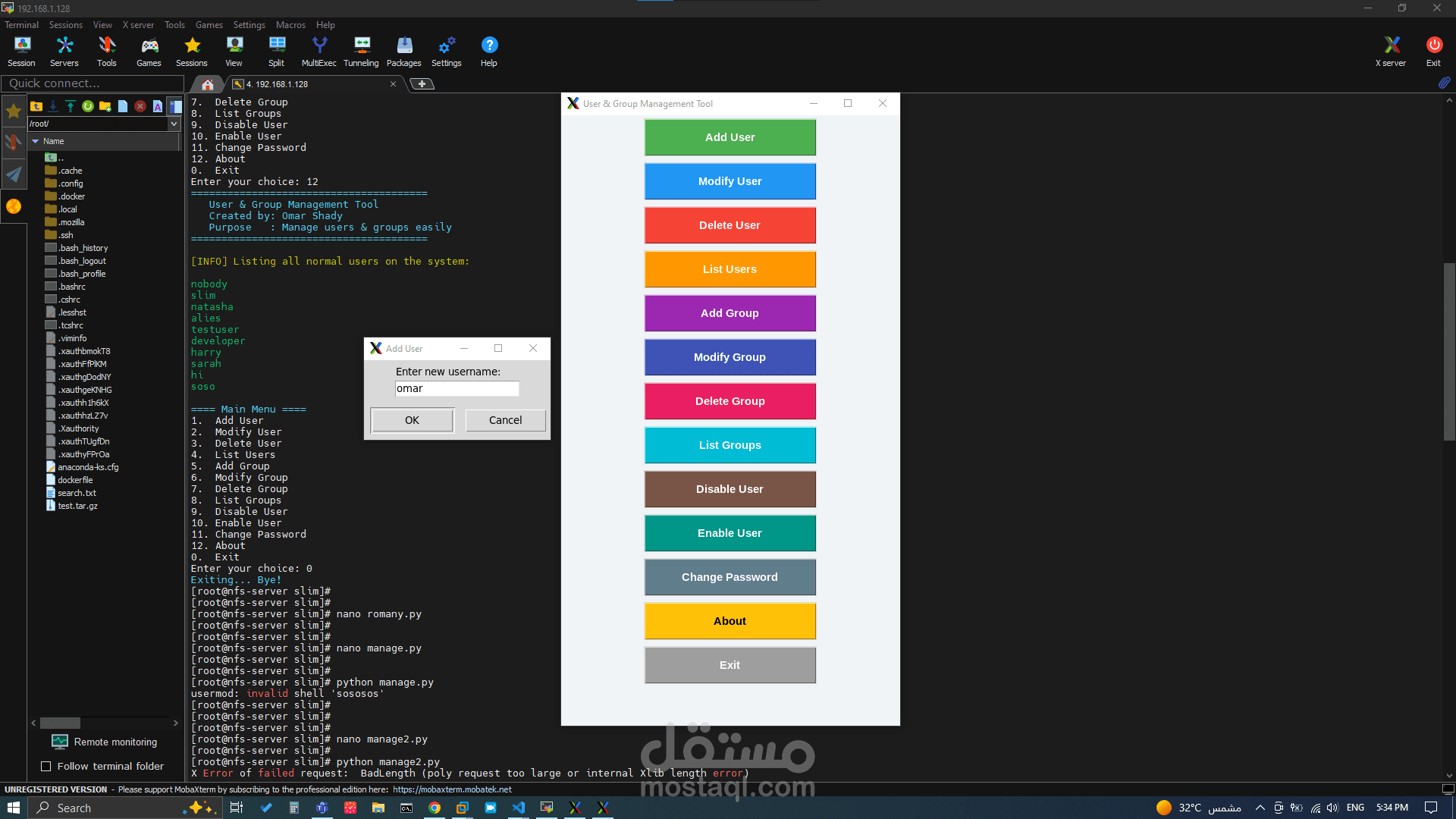 This application is a User Management System built with Python and Tkinter. It provides a simple and user-friendly graphical interface that allows administrators to perform basic user operations, including:
