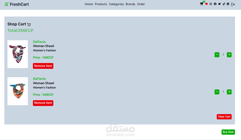 قمت بتطوير متجر إلكتروني متكامل باستخدام Next.js, TypeScript, Tailwind CSS مع إدارة حالة عبر Redux Toolkit.