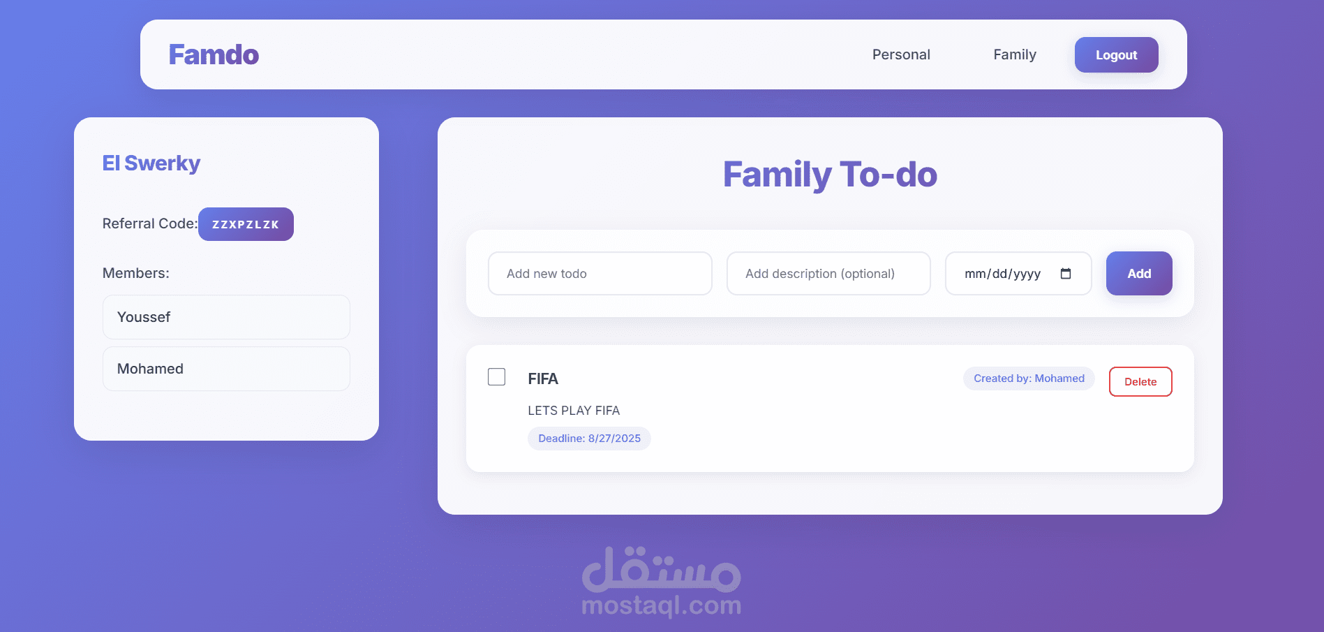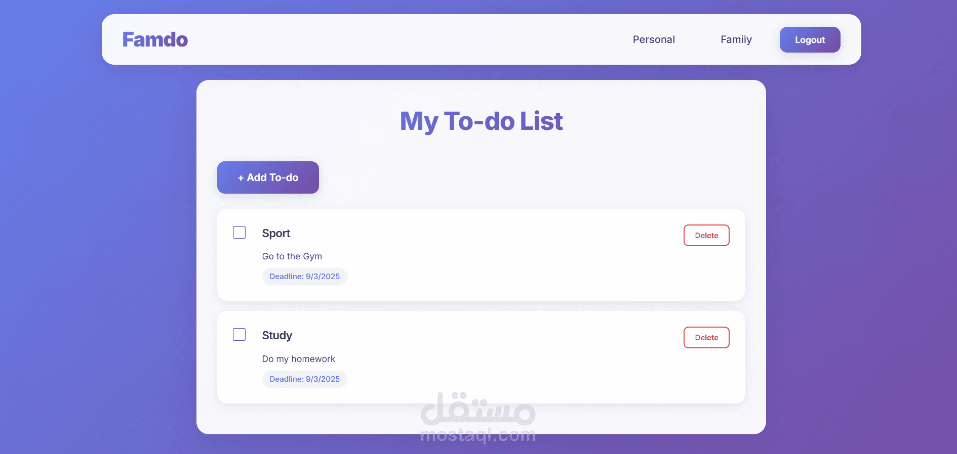 إدارة المهام بسهولة: إنشاء، تعديل، حذف المهام بواجهة بسيطة وواضحة لزيادة الإنتاجية.