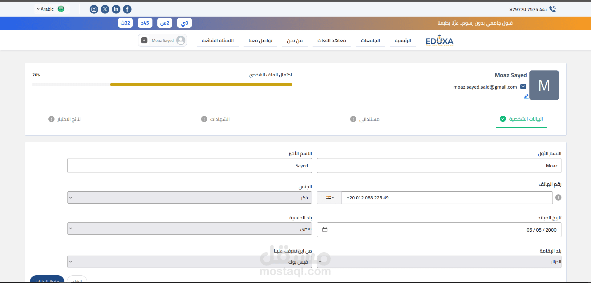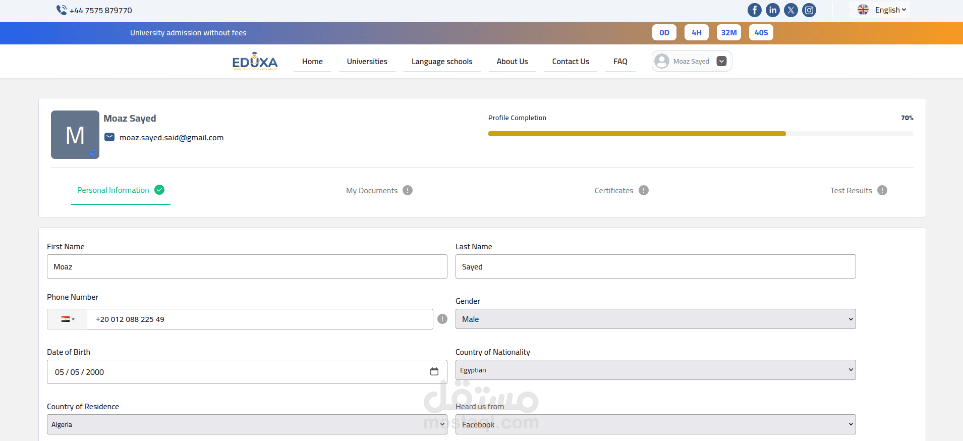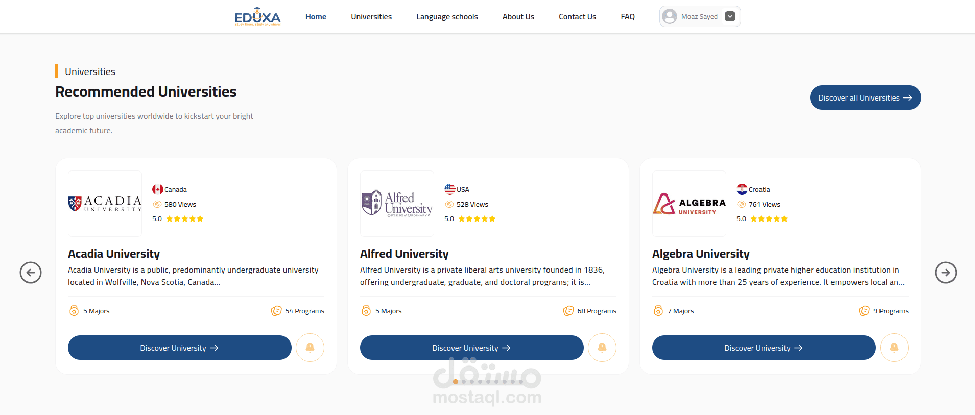شاركت في تصميم وتطوير موقع Eduxa ليكون منصة تعليمية متكاملة تساعد الطلاب على إدارة البرامج والدورات بشكل سهل وفعّال