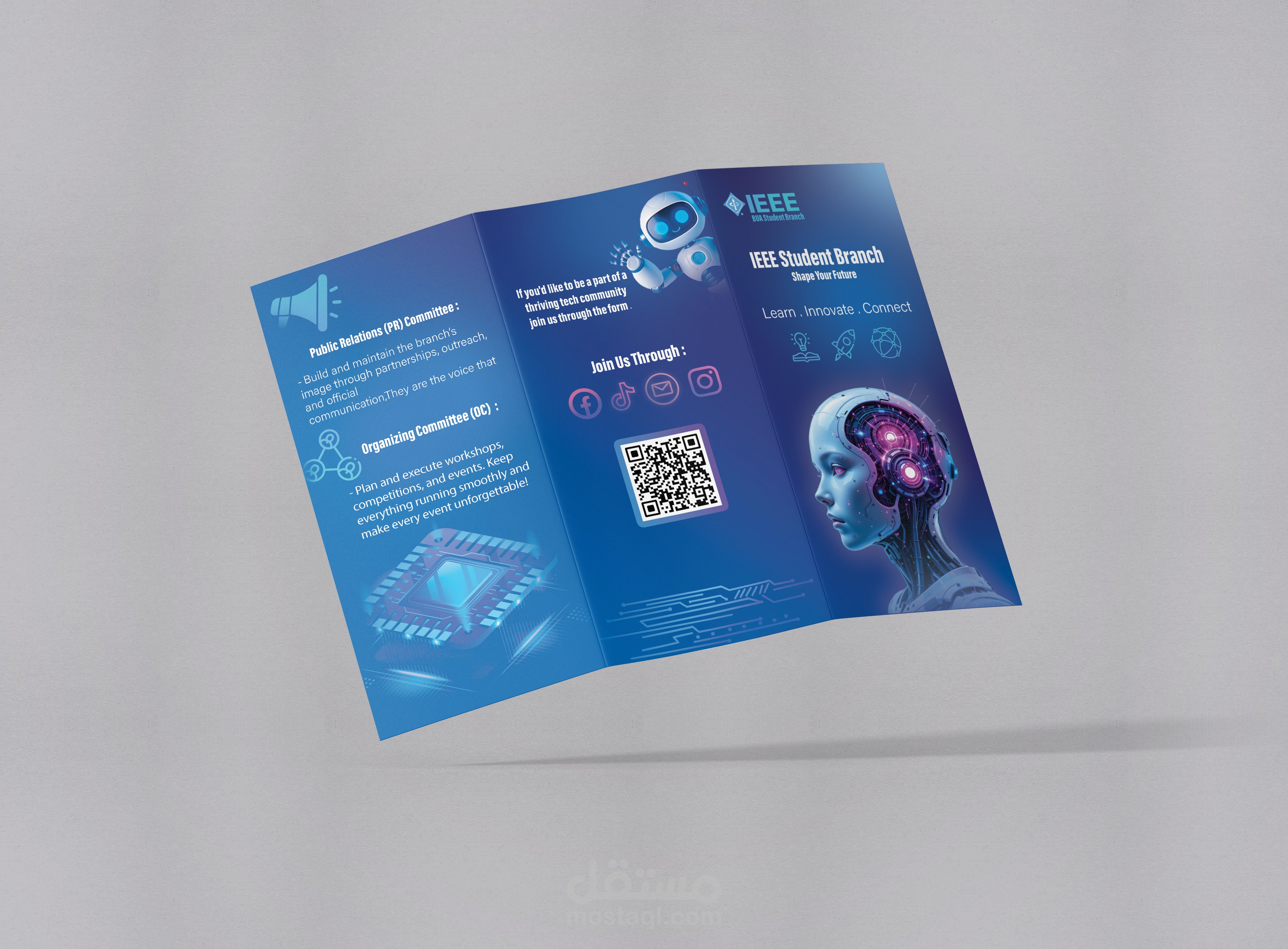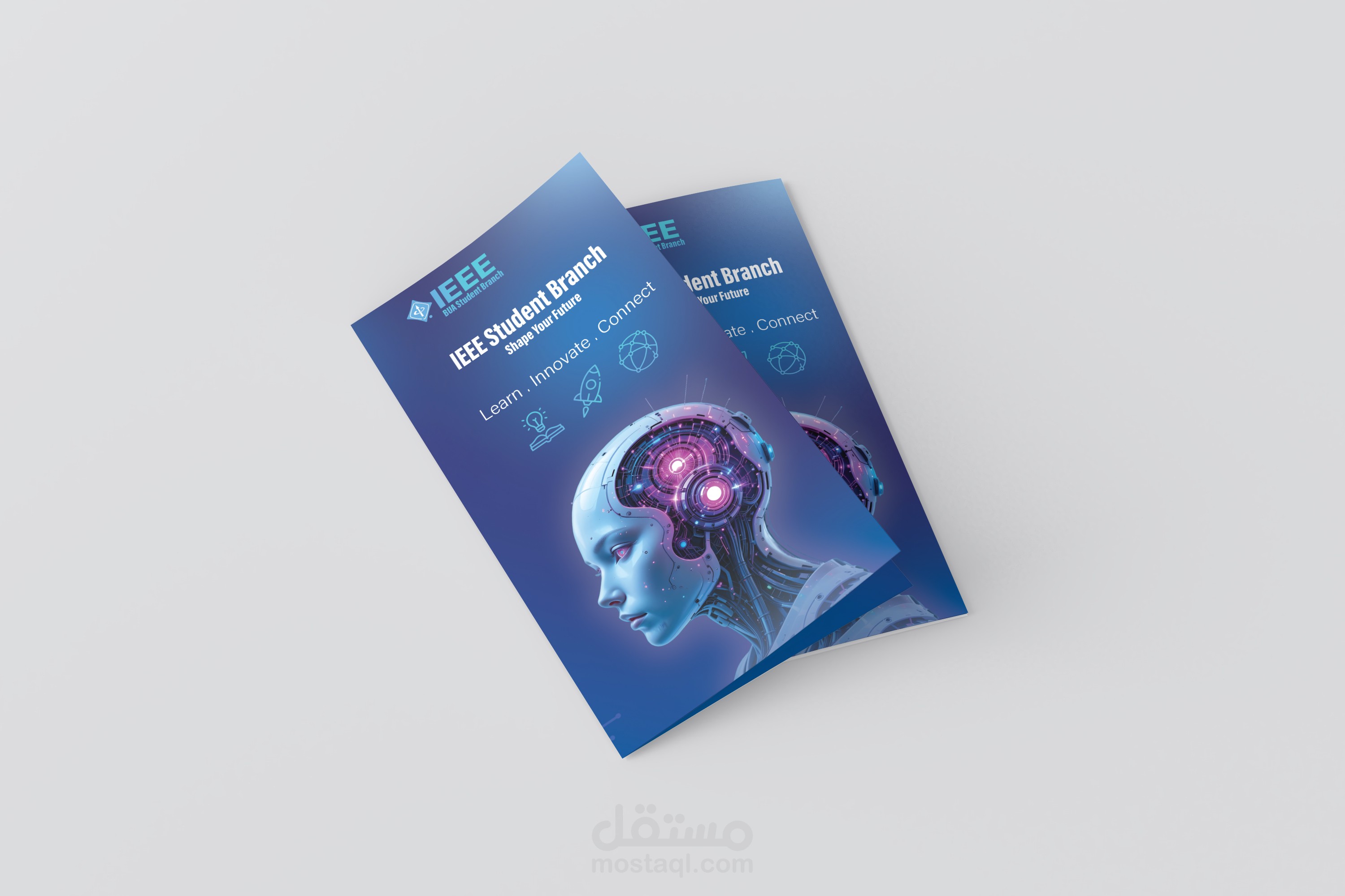 قمت بتصميم بروشور ثلاثي الطيات (Tri-Fold) لفرع IEEE الطلابي، يوضح الأقسام واللجان الداخلية بشكل بسيط وجذاب.