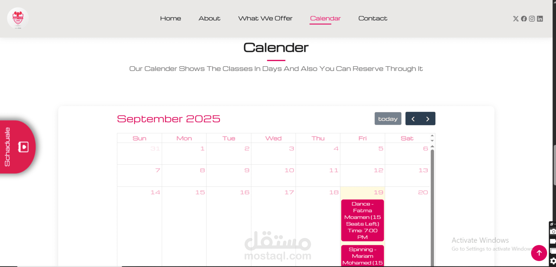 يمكن للزائر حجز كلاس مباشرة من خلال التقويم.
