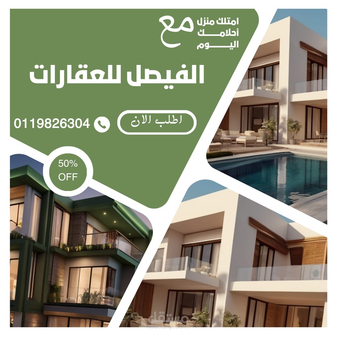 التصميمات بتتنوع ما بين إعلان عقار جديد، عروض وخصومات، عقار مميز للأسبوع، خرائط مواقع، وكمان نصائح للاستثمار العقاري. الهدف إنها تشد الانتباه وتخلي العميل يتحمس للتواصل أو المعاينة.