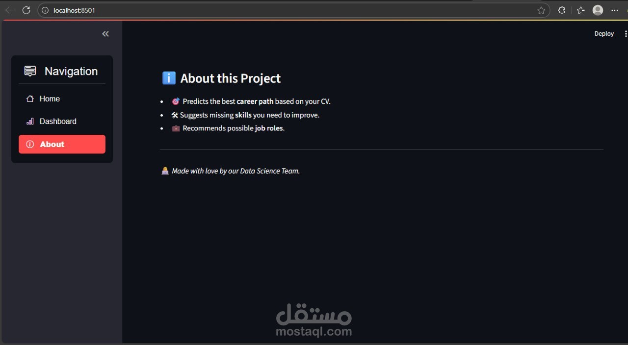 Results: Successfully provided personalized career recommendations to users based on their uploaded CVs, enhancing the job search experience for students.