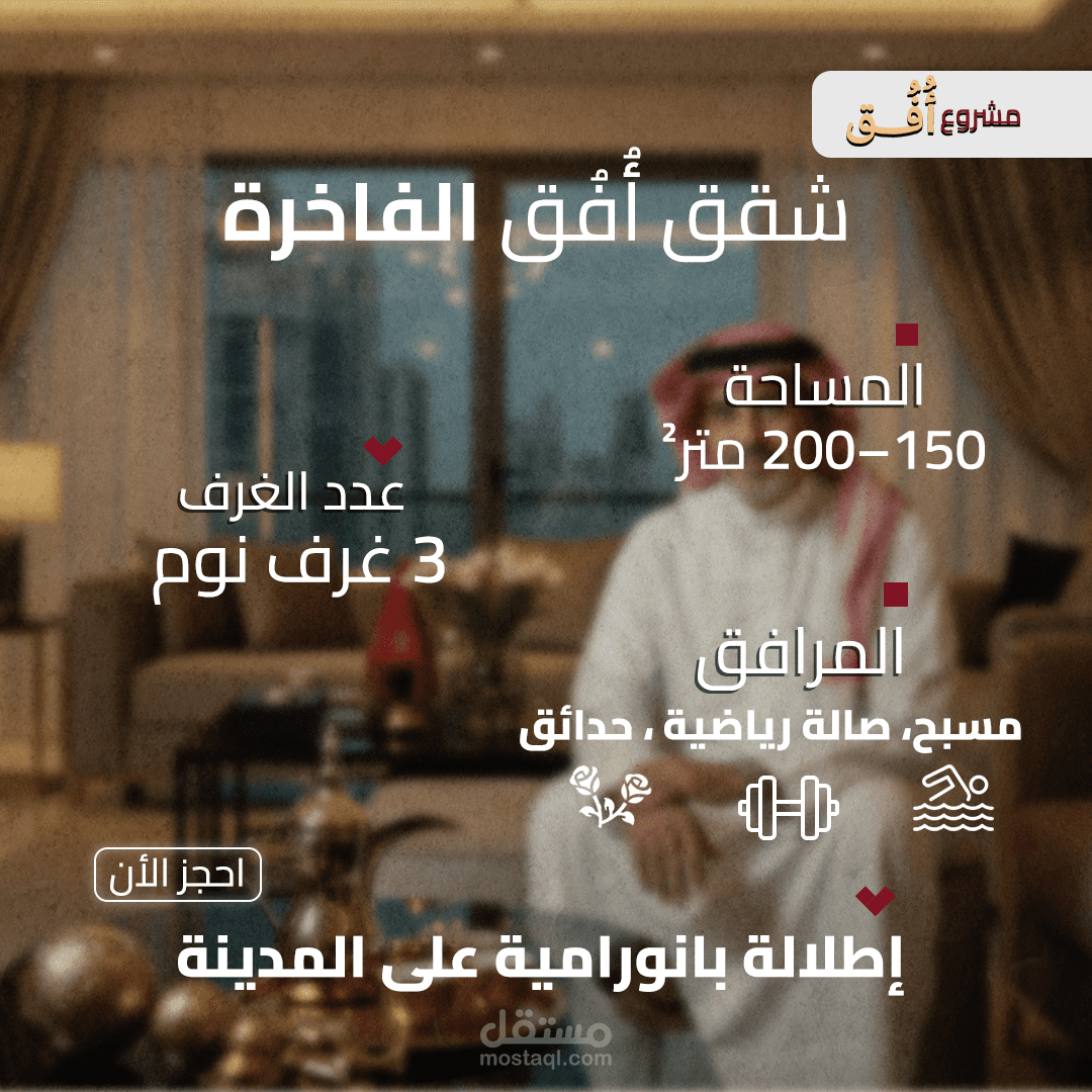 تم تصميم هذه الأعمال كجزء من حملة إعلانية لمشروع عقاري سكني فاخر. تهدف التصميمات إلى جذب العملاء المهتمين بشراء شقق راقية في موقع مميز، مع التركيز على جودة الحياة والفخامة.