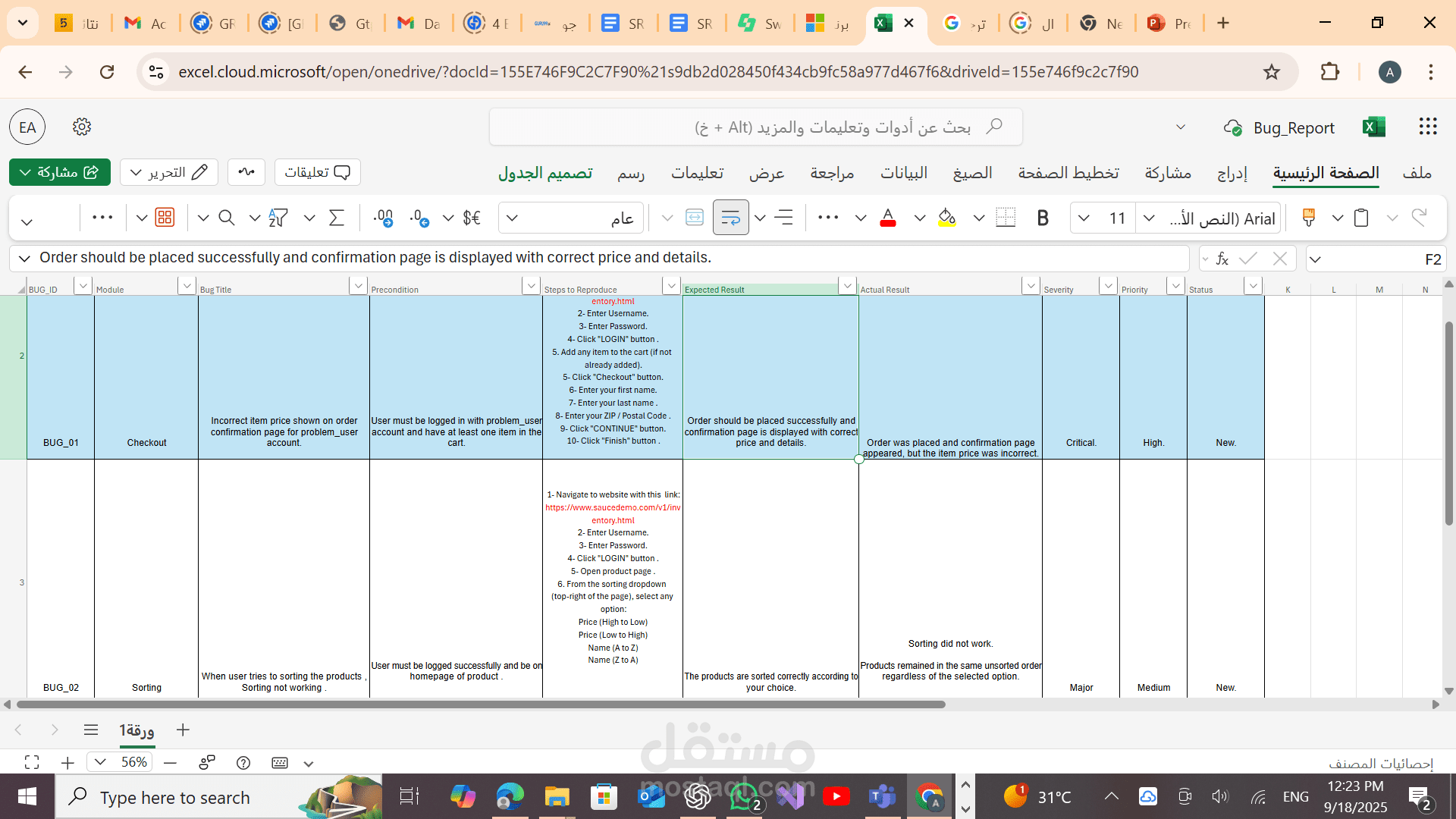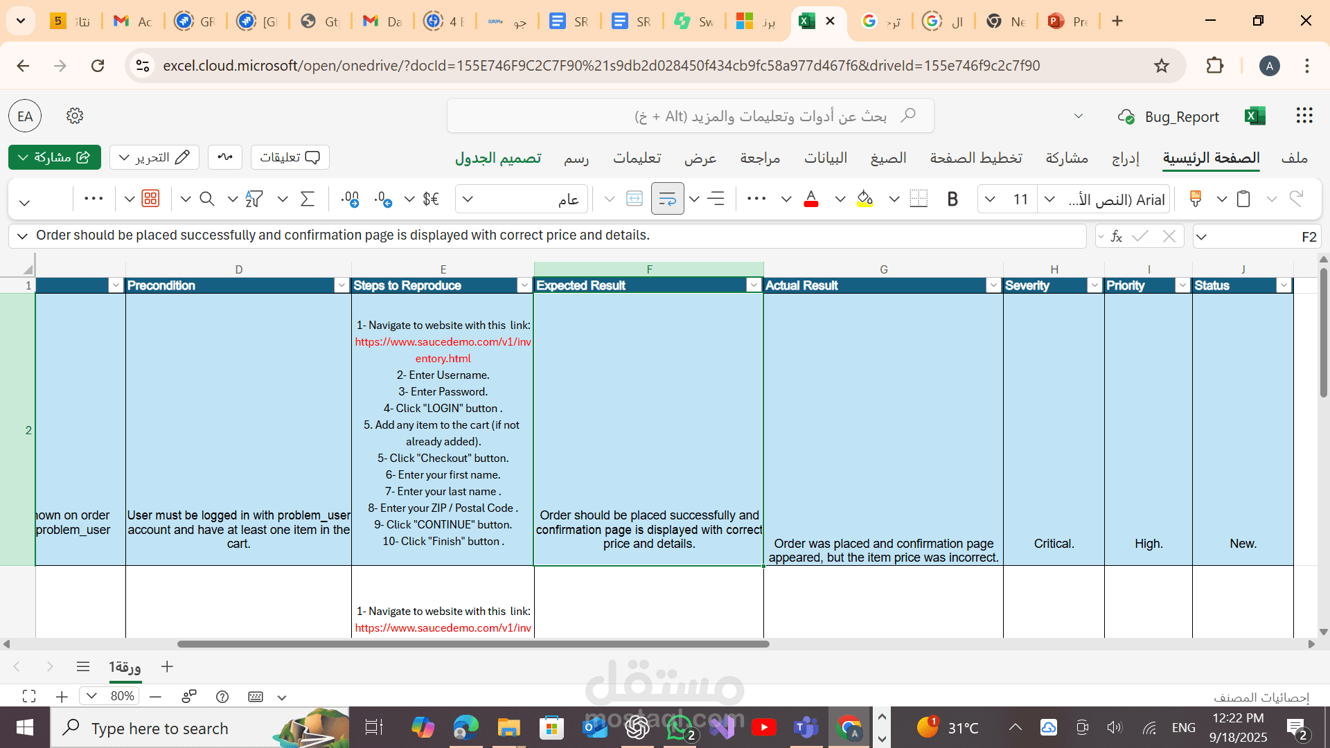 وثّقت كل الأخطاء في Bug Reports احترافية مع خطوات إعادة الإنتاج ودرجات الأولوية والشدة.