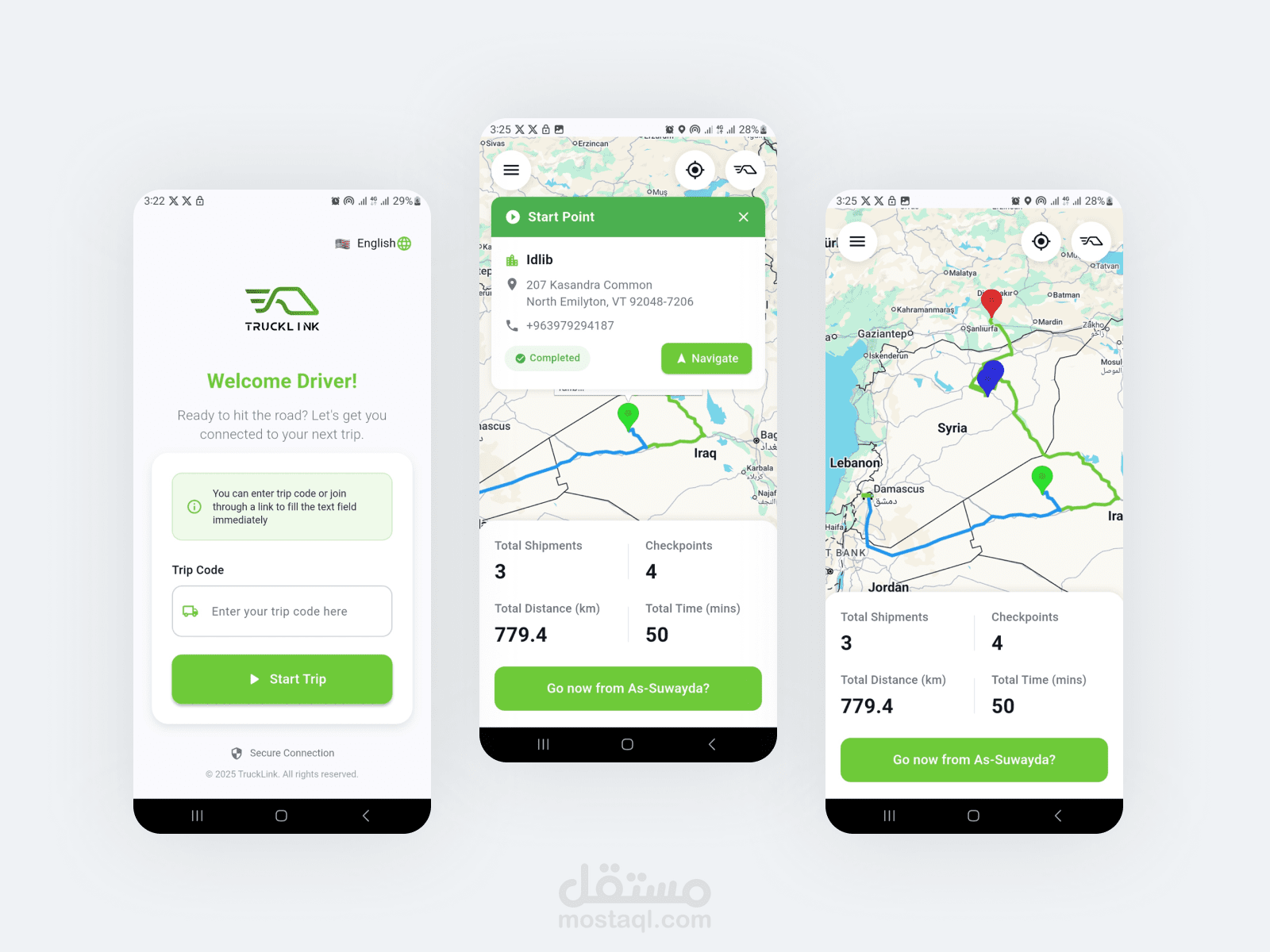 السائق يدخل عبر الرابط المولد من شركة الشحن لفتح الطلب في التطبيق مباشرة.