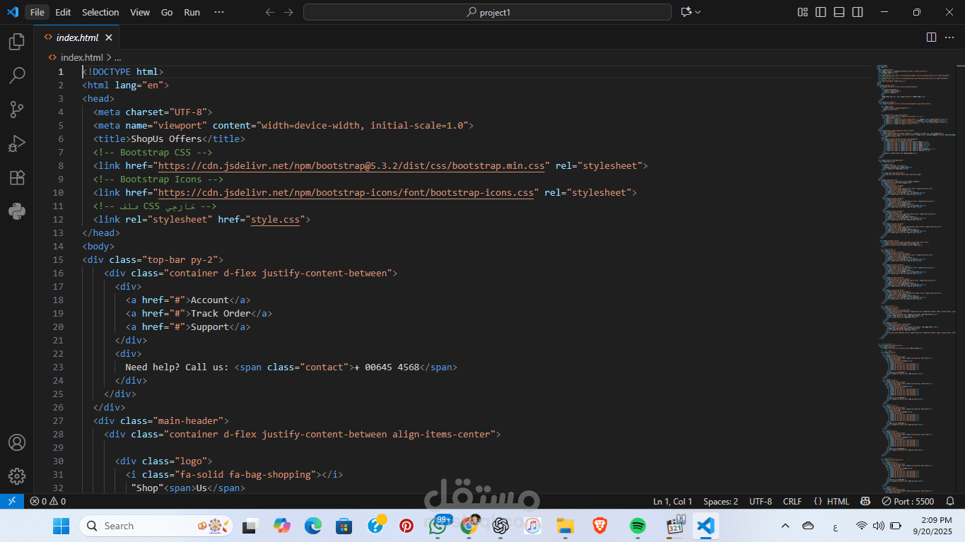 HTML5: لبناء الهيكل الأساسي للصفحة (Header, Sections, Footer).