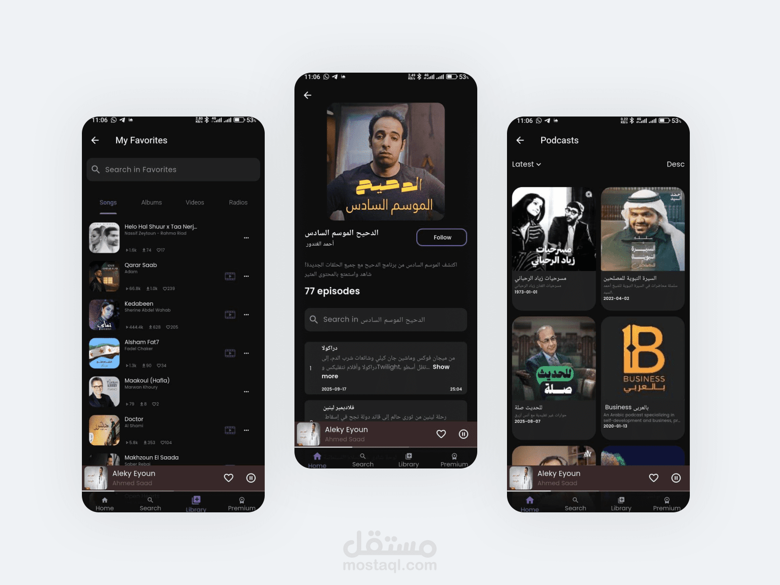 مكتبة موسيقية متنوعة: تصفح الأغاني من مختلف الأنواع مع أحدث الألبومات والبودكاست.