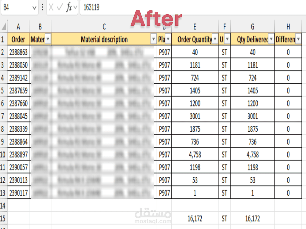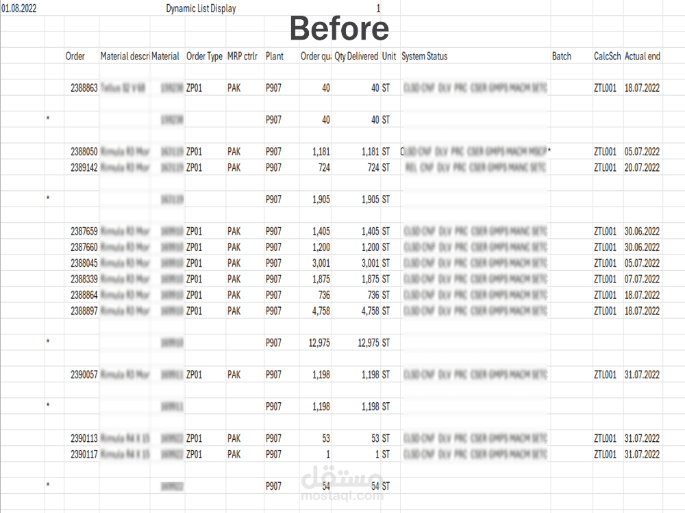 قمت بالإجراءات التالية لبيانات مستخرجة من نظام الساب: