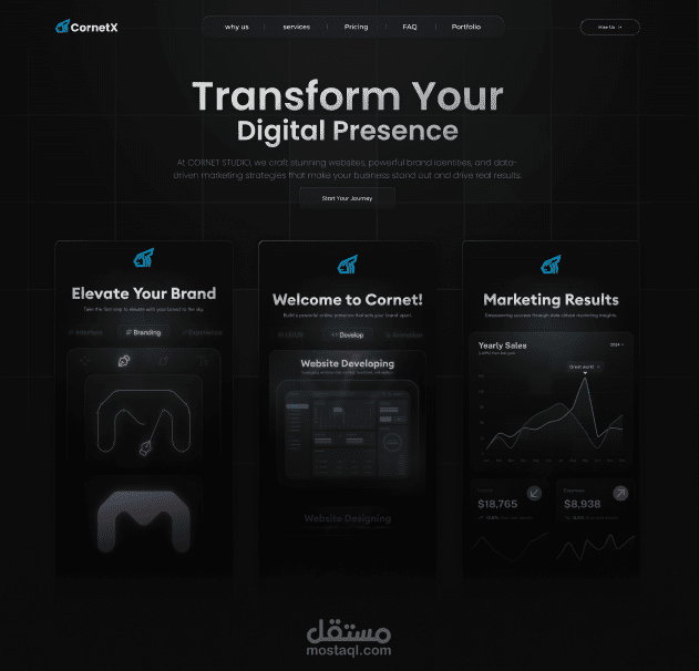 Our website delivers a modern and dynamic digital experience, combining professional design with advanced technology. We offer a range of services including social media likes, custom software development, and portfolio design with impressive project showcases. The site is fully responsive, user-friendly,