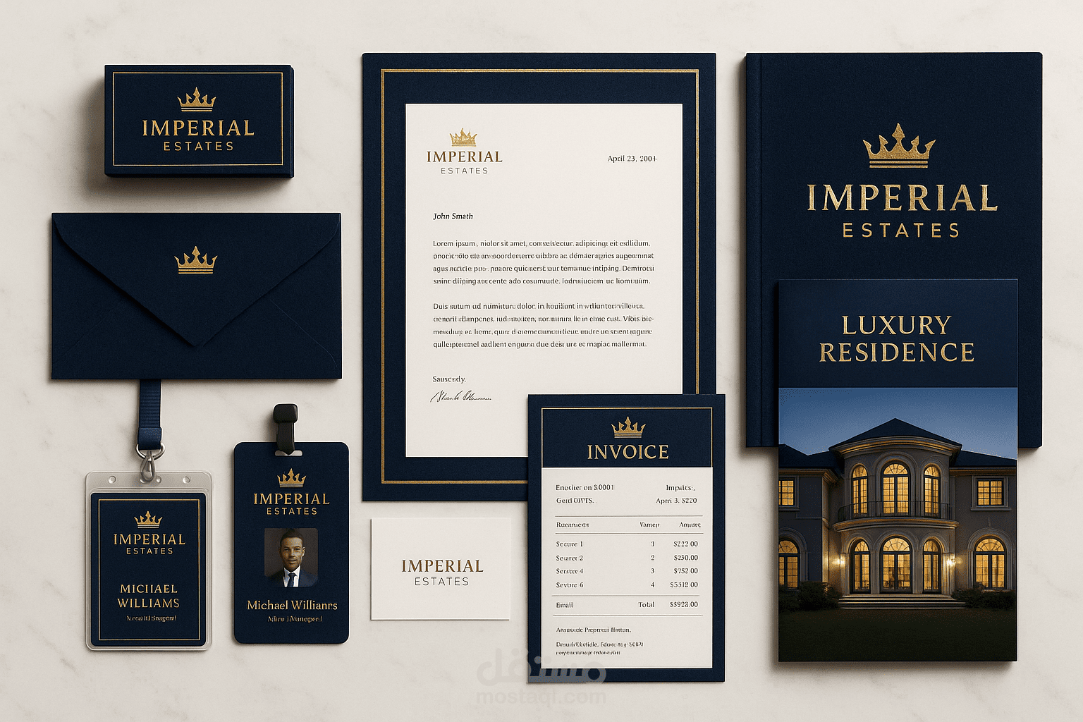 1. المطبوعات الأساسية: أوراق رسمية، بطاقات أعمال، مظاريف