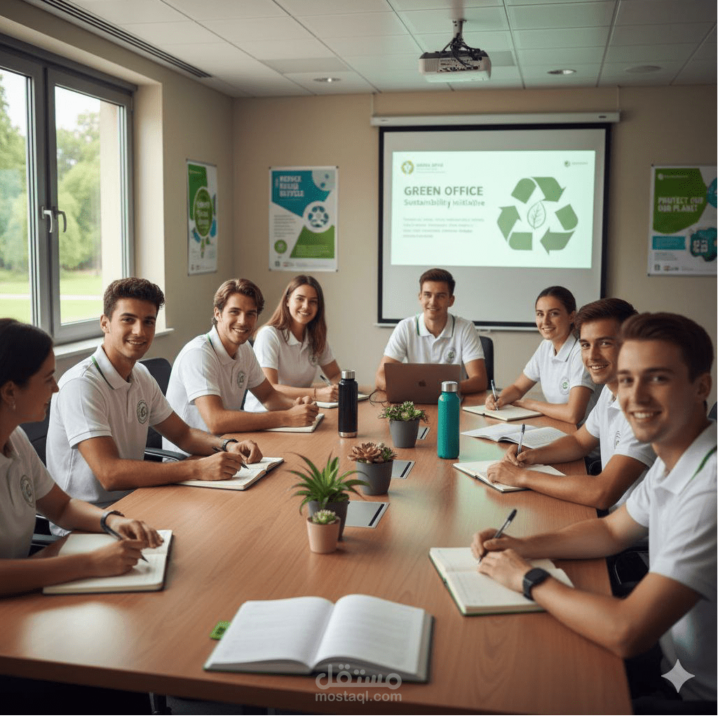 تتميز الهوية البصرية لمشروع "المكتب الأخضر" بالبساطة، والوضوح، والتركيز على مفاهيم النمو، والاستدامة، والرعاية. تعتمد الهوية على شعار دائري يجمع بين عدة عناصر بصرية ليعكس رسالة المشروع الأساسية: