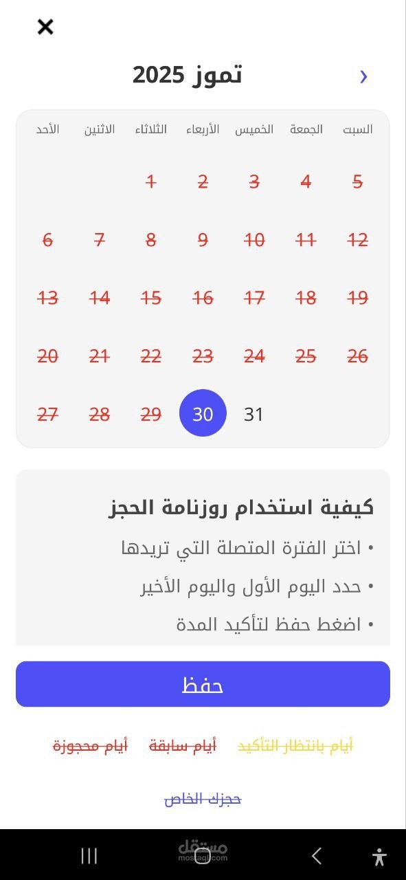 التطبيق يمكن المستخدم من اختيار الحجز المناسب في اليوم الذي يناسبه