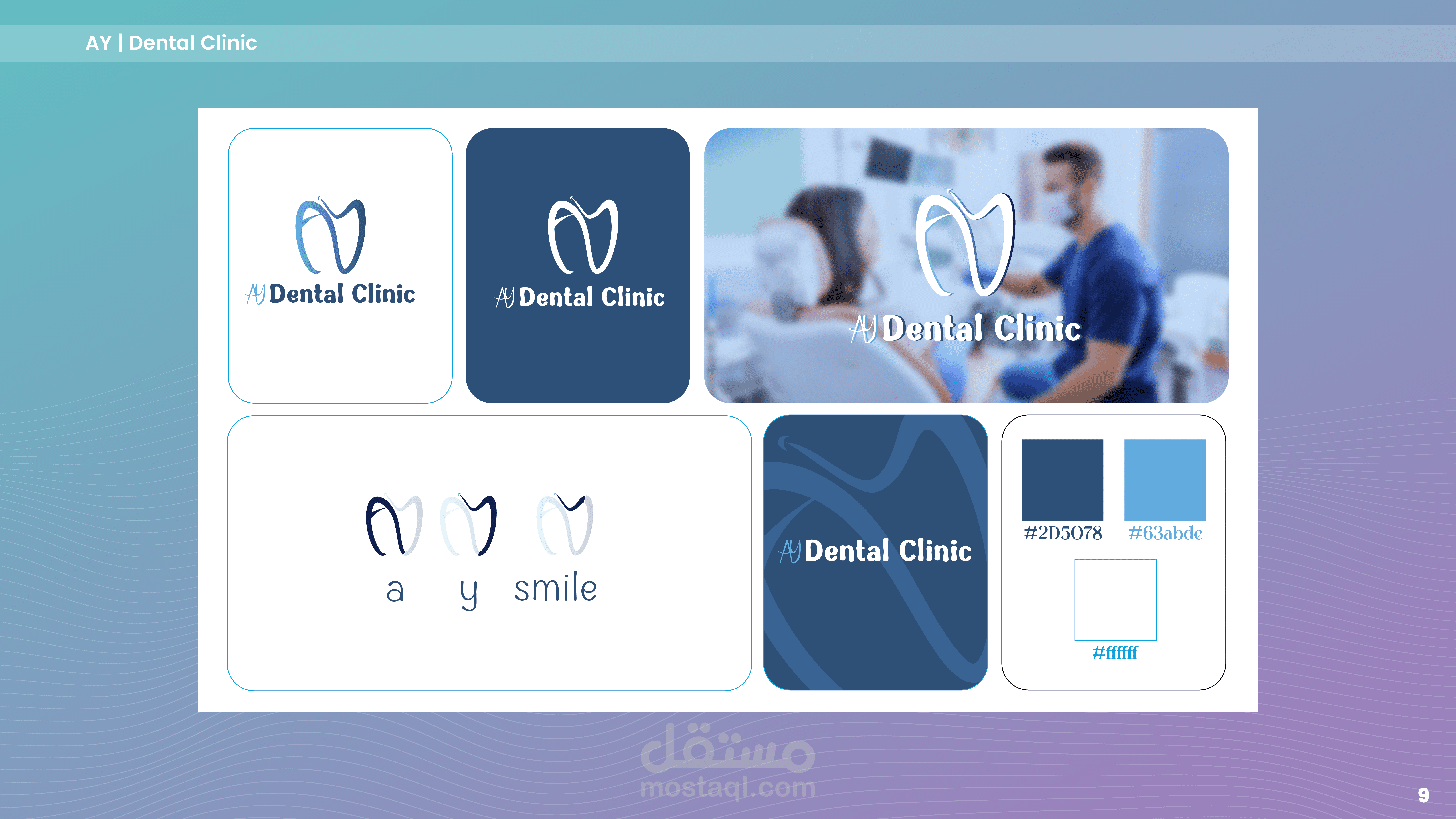 توليت مسؤولية تصميم هوية بصرية متكاملة لعيادة أسنان، بدءًا من تصميم الشعار الذي يجمع بين الحرفين "A" و "Y" مع رمز الأسنان. امتد المشروع ليشمل جميع عناصر العلامة التجارية لضمان تناسق بصري احترافي وموحد.