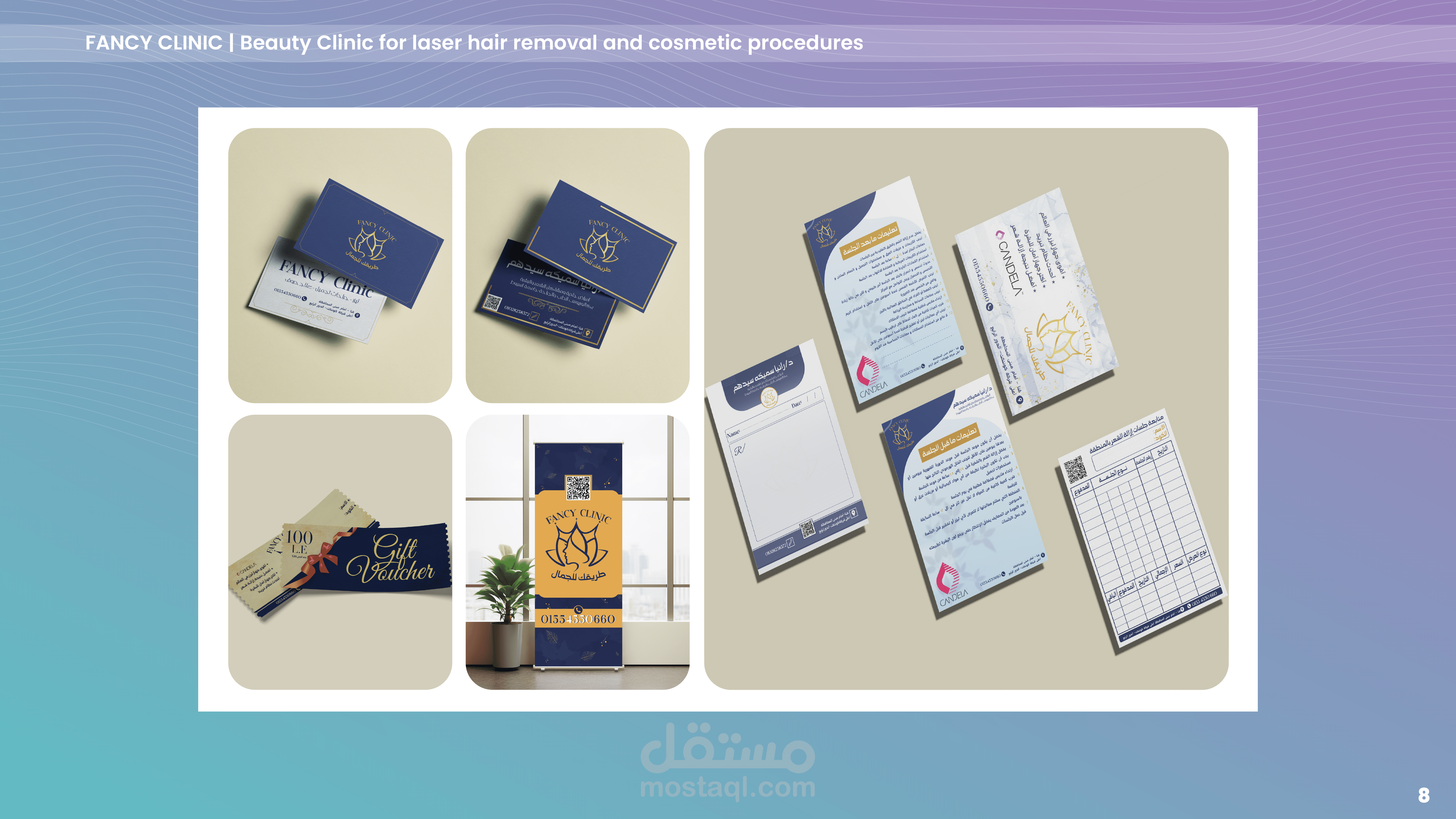 قدمتُ تصميم هوية بصرية جذابة لعيادات تجميل، مع التركيز على خلق شعار أنيق ومعبر يعكس جوهر خدمات العيادة (الليزر والعلاجات التجميلية). قمت بتطوير الألوان والأنماط التي تمنح العلامة التجارية مظهرًا فاخرًا واحترافيًا.