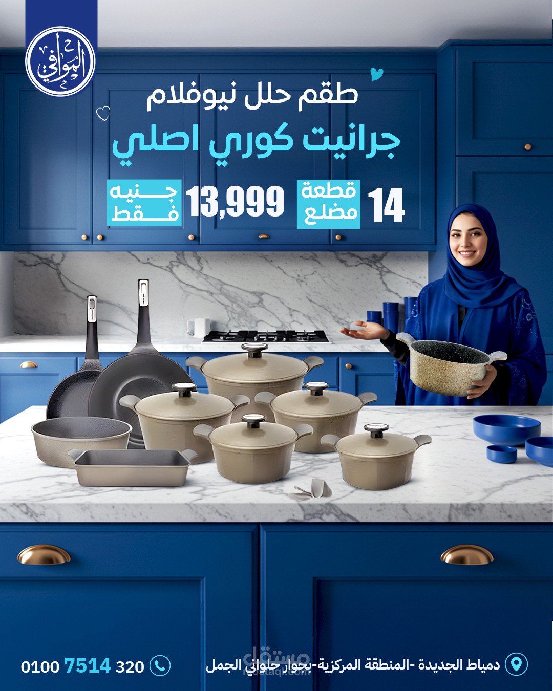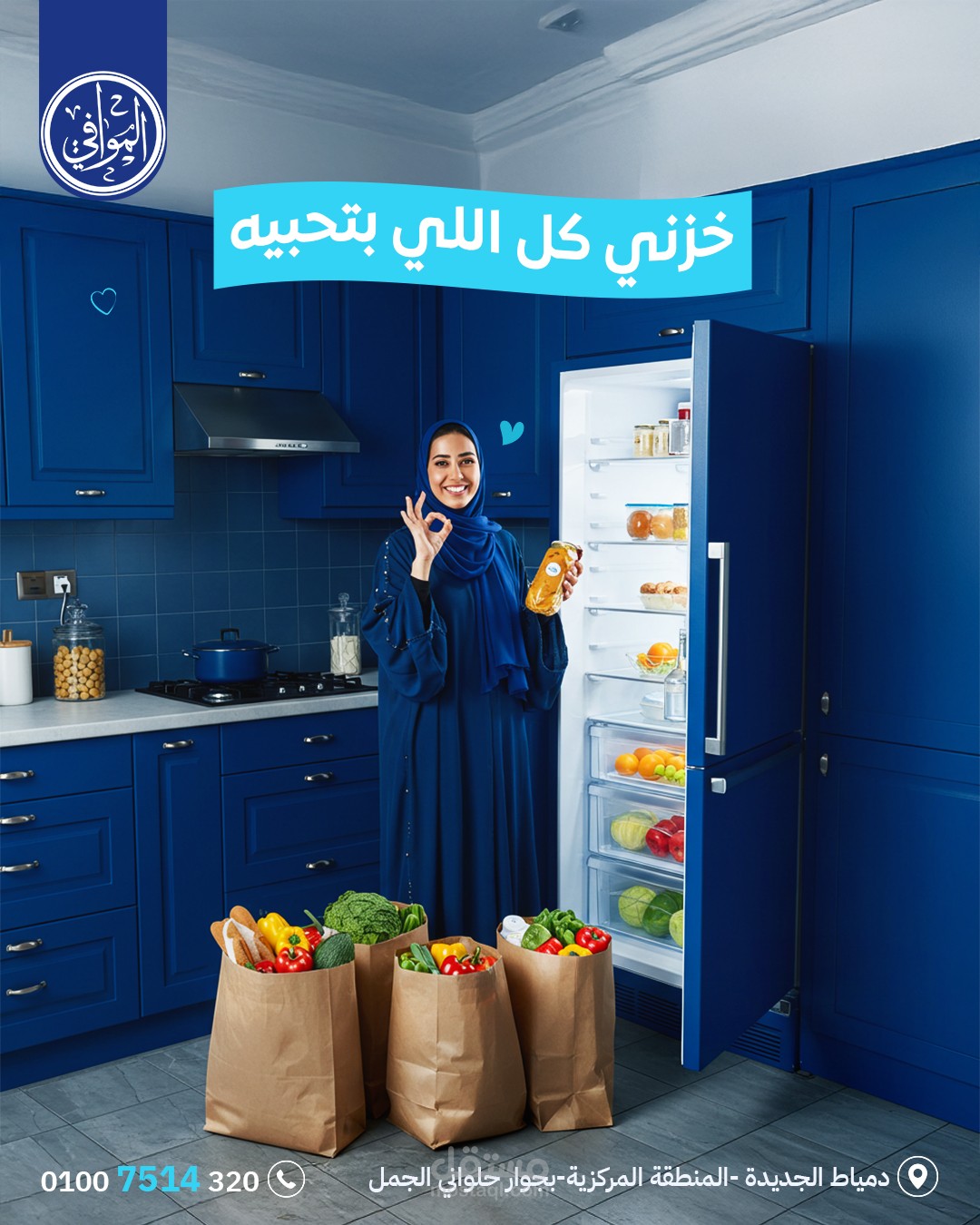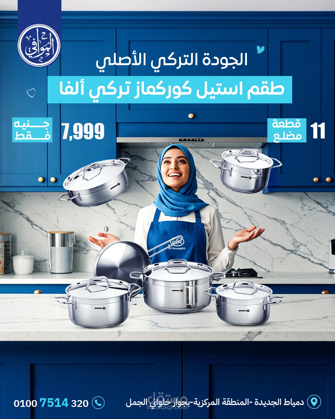 مشروع تصميمات سوشيال ميديا لمتجر الموافي ستور المتخصص في بيع الأدوات المنزلية والأجهزة الكهربائية مثل الحلل، أدوات المطبخ، الغسالات، البوتاجازات، وكل ما يخص البيت.