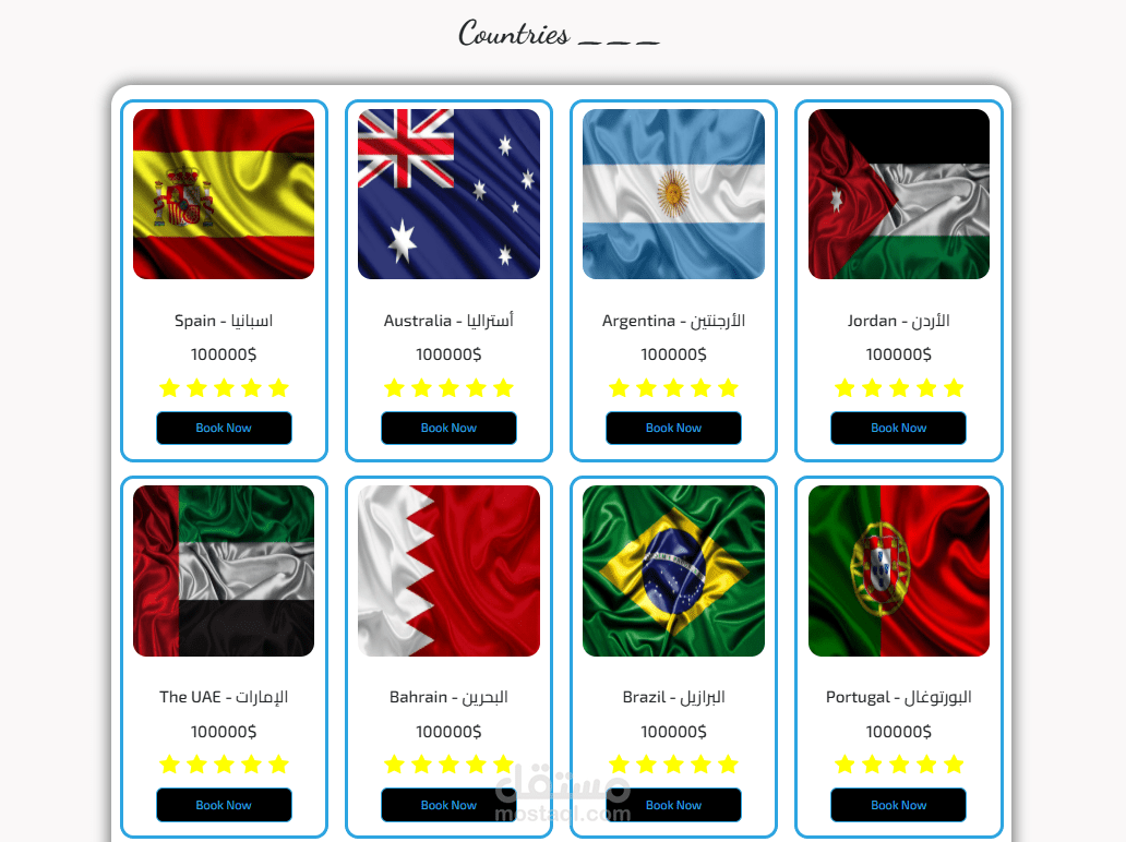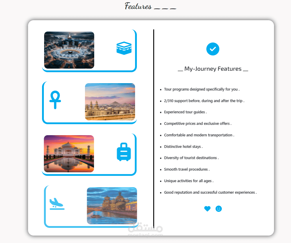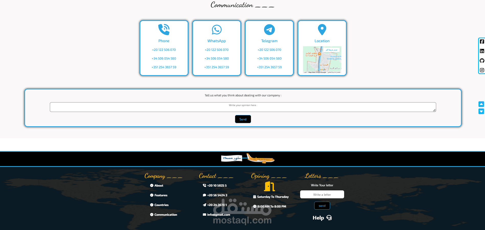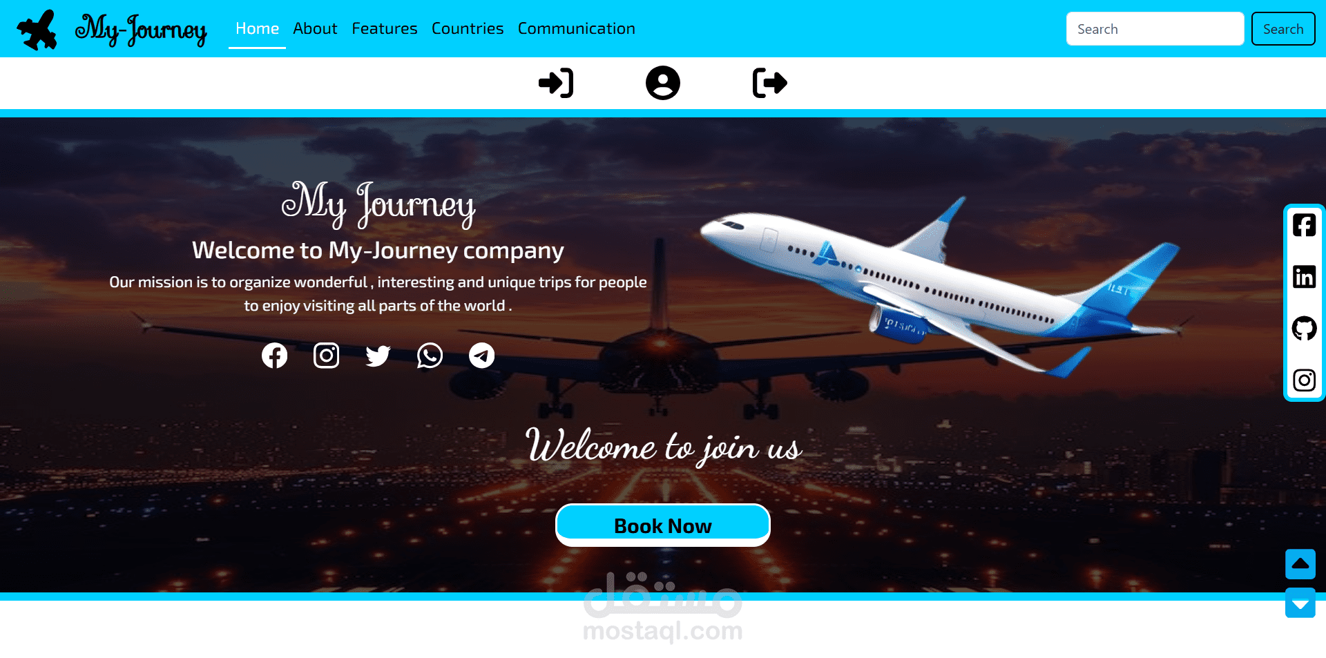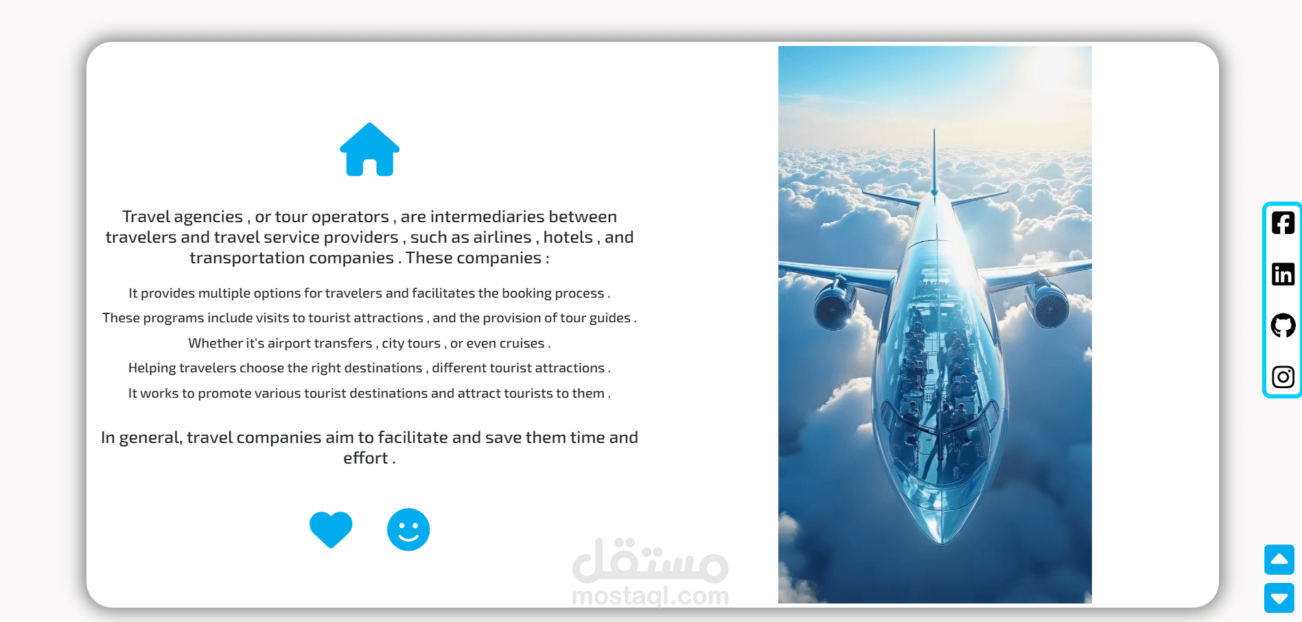 صفحة الواجهة الخاصة بالشركة وبها نبزة عن الخدمات المقدمة و الدول المتاح السفر لها فى الوقت المطلوب .