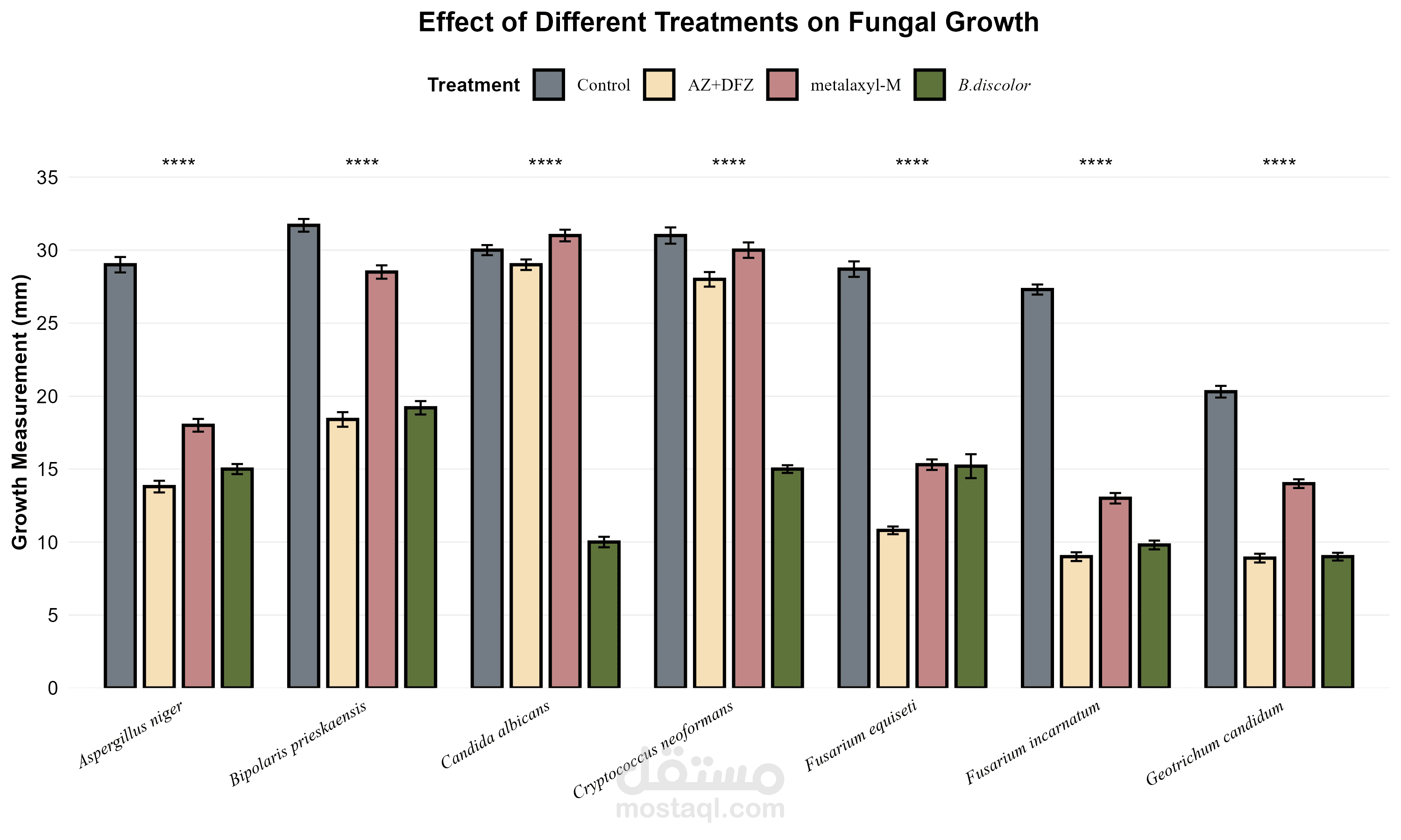 نفذت مشروعًا متكاملًا لتحليل بيانات الفطريات والبكتيريا بالاعتماد على برنامج R لما يوفره من دقة ومرونة في التحليل الإحصائي: