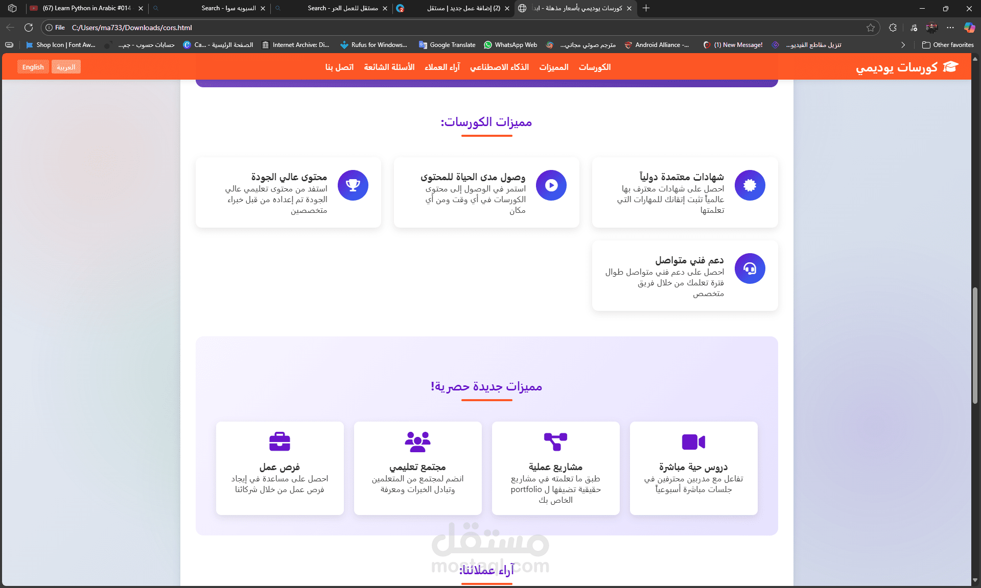 آراء العملاء: قسم يحتوي على مراجعات إيجابية من العملاء، مما يعزز الثقة والمصداقية.
