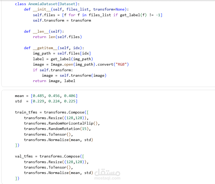 استخدام شبكة CNN لتصنيف الصور إلى Anemic vs Non-Anemic.