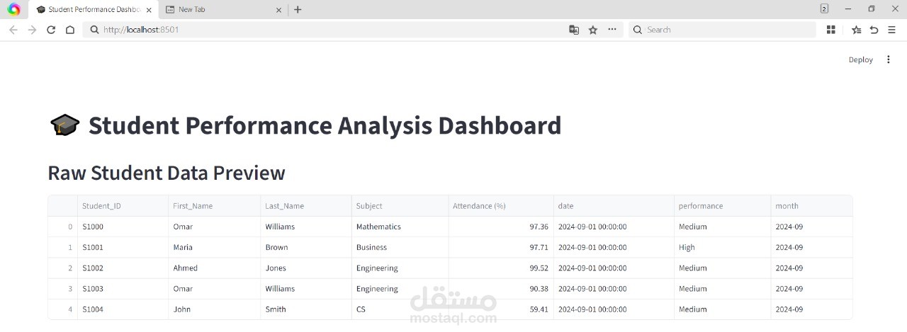 تم تصميم وتطوير لوحة معلومات تفاعلية متكاملة، تهدف إلى مساعدة المؤسسات التعليمية على متابعة وتحليل أداء الطلاب وبيانات الحضور والغياب لاتخاذ قرارات أفضل.