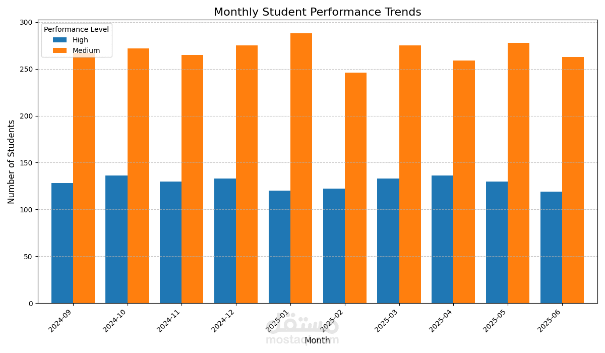 تحليل أداء الطلاب: رسم بياني يوضح تطور متوسط درجات الطلاب بمرور الوقت.