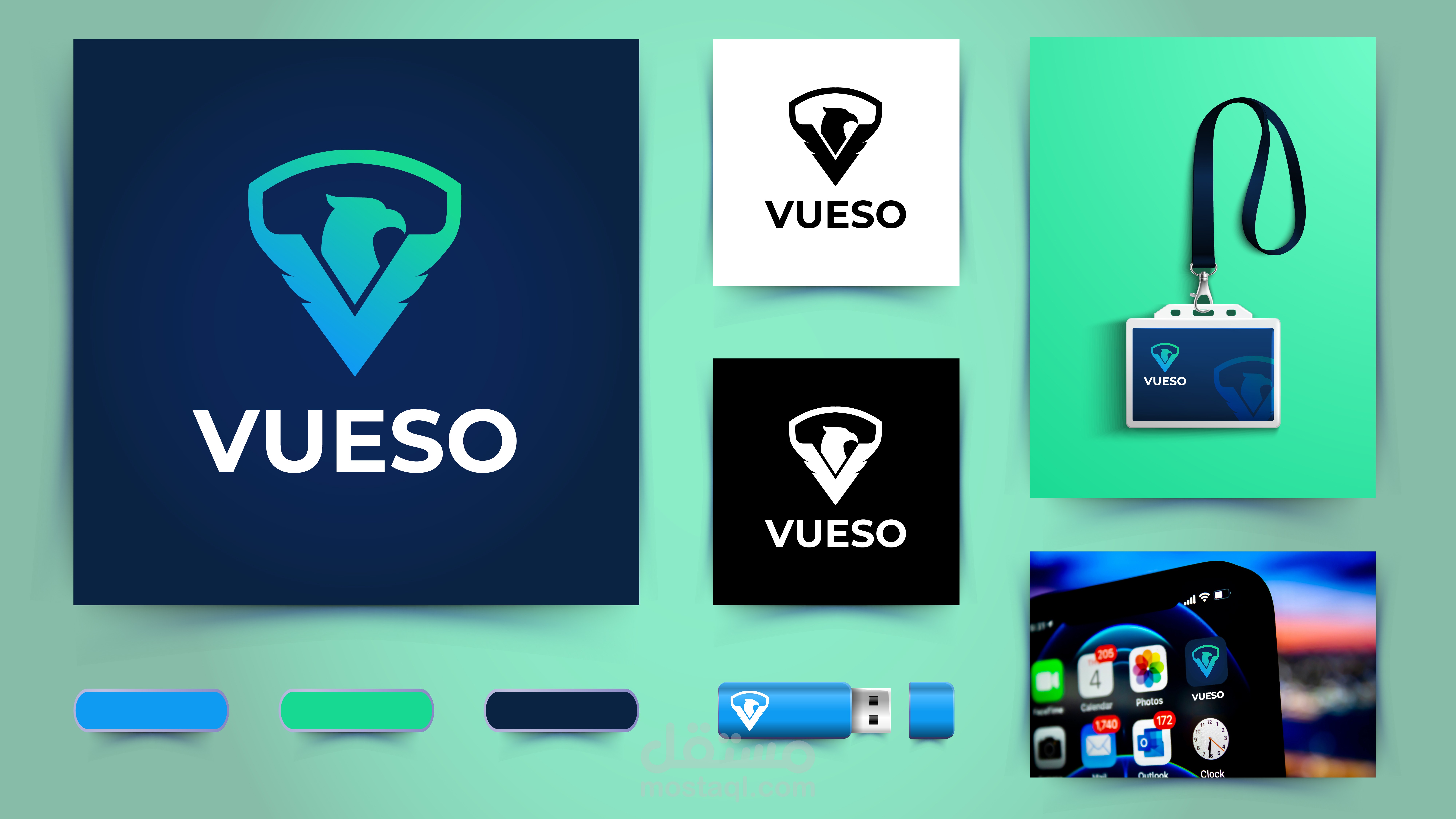 قمت بتصميم هوية بصرية لشركة حماية الكترونية تسمى "VUESO"