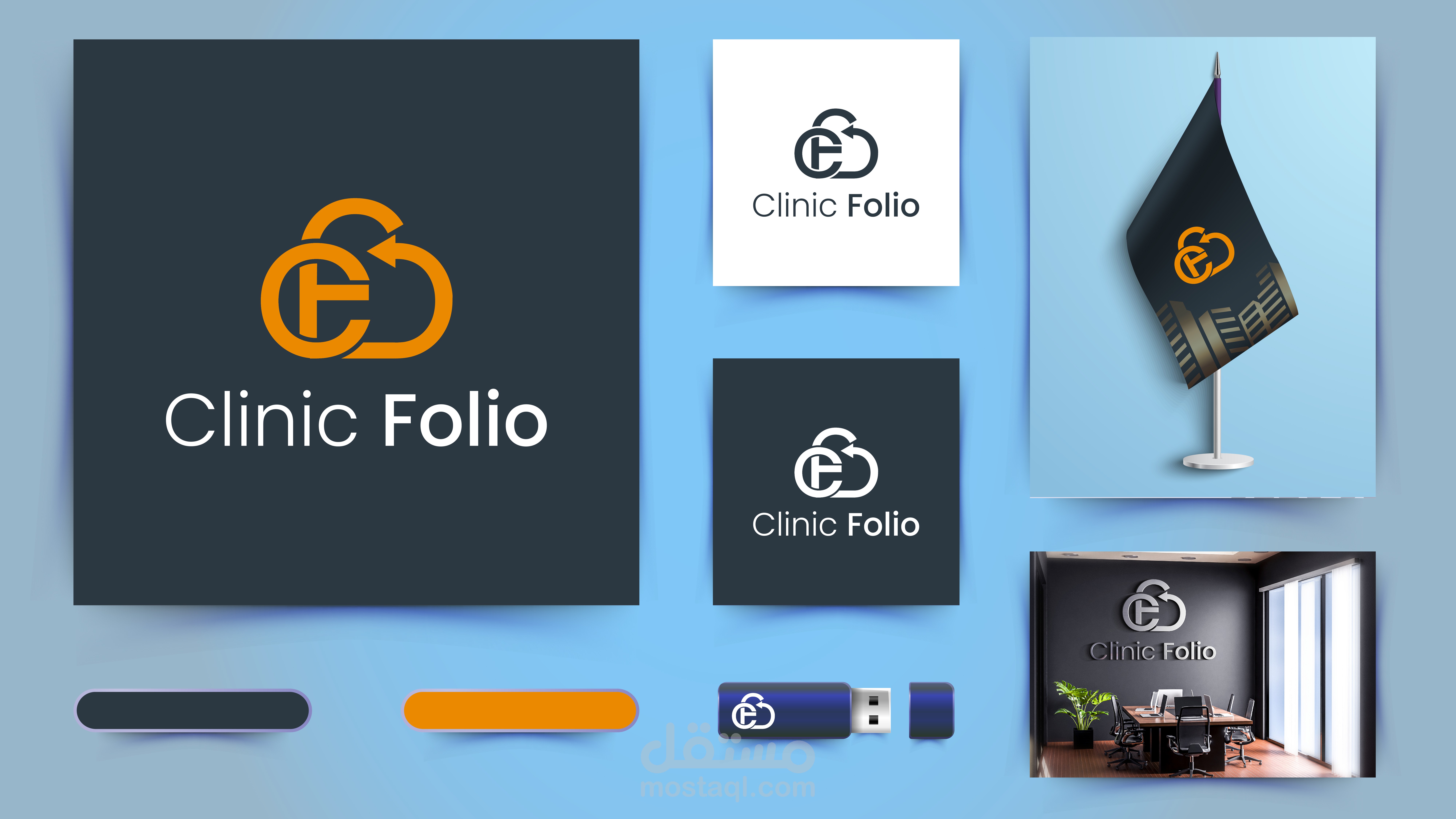 قمت بتصميم هوية بصرية لشركة رعاية طبية سحابية تسمى "Clinic Folio"