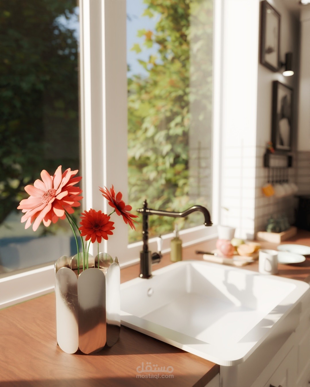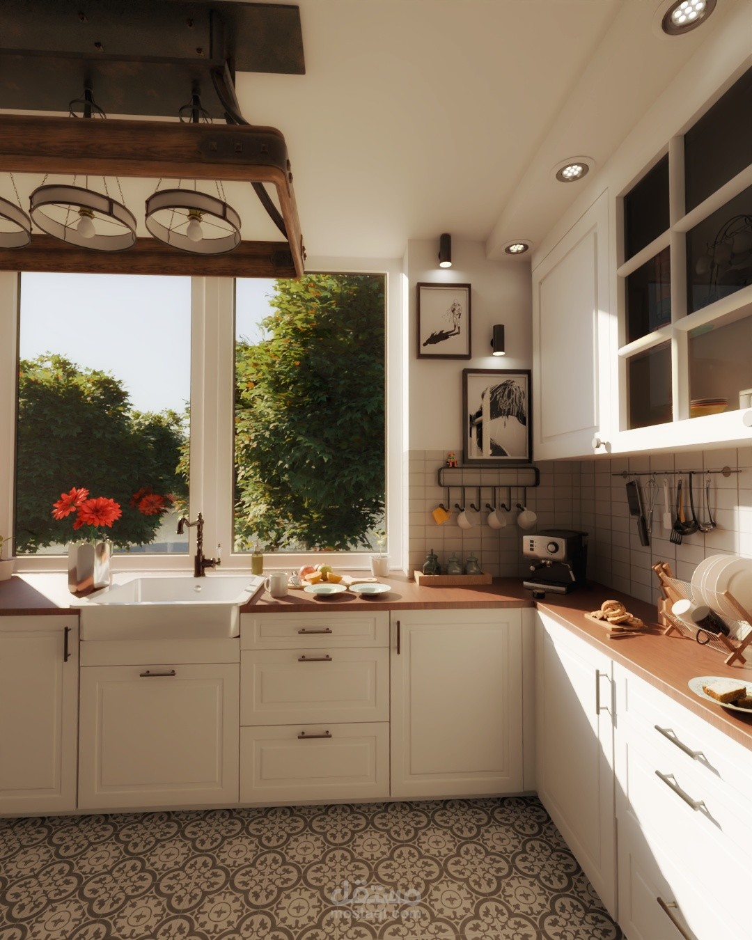 توزيع عملي للمساحات يسهّل الحركة داخل المطبخ.