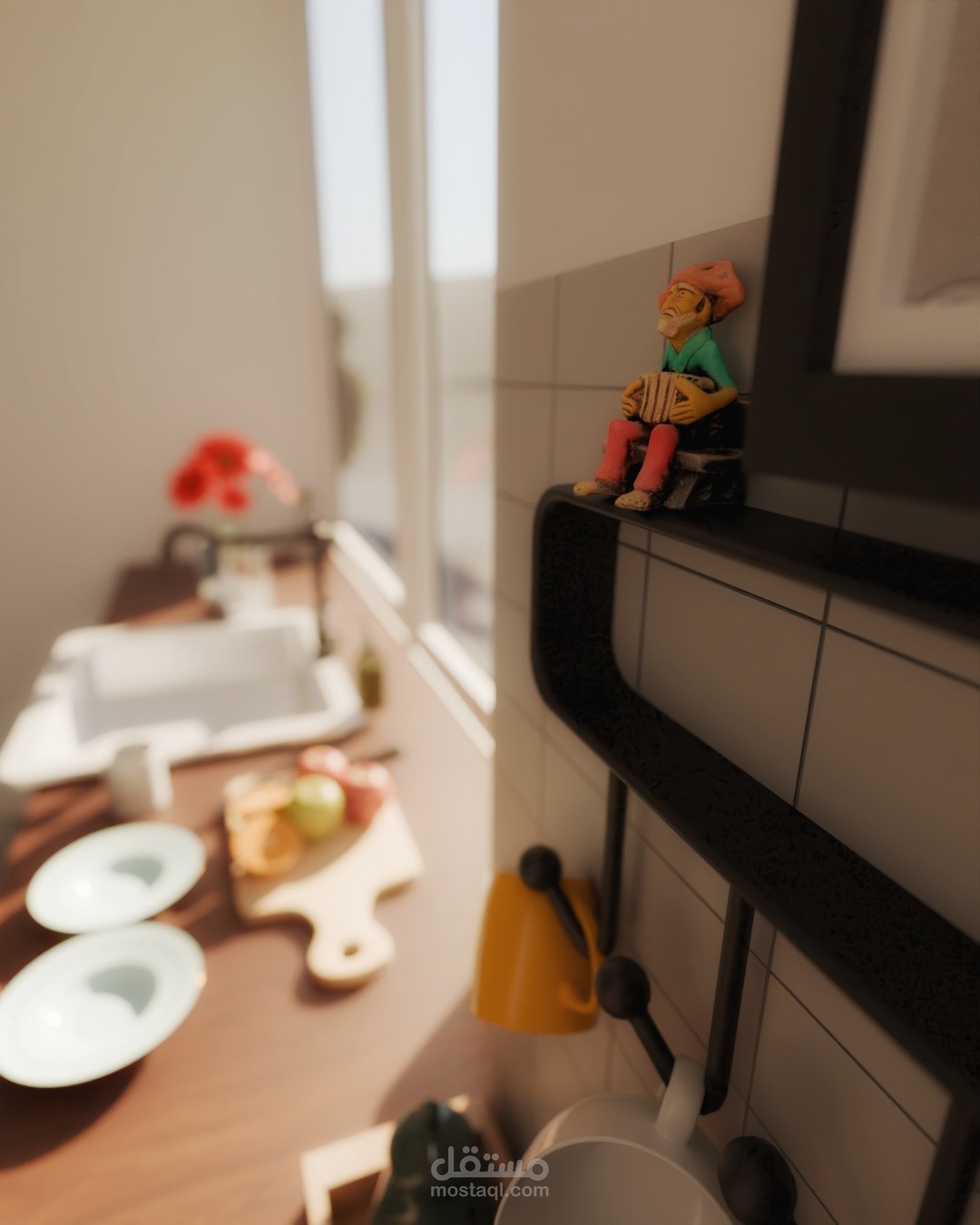 مشروع RE-Kitchen هو عمل تصميم داخلي ثلاثي الأبعاد (3D Interior Design) لمطبخ بمفهوم عصري يجمع بين الخامات الخشبية وبديل الرخام ليمنح إحساس بالفخامة والدفء في نفس الوقت.
