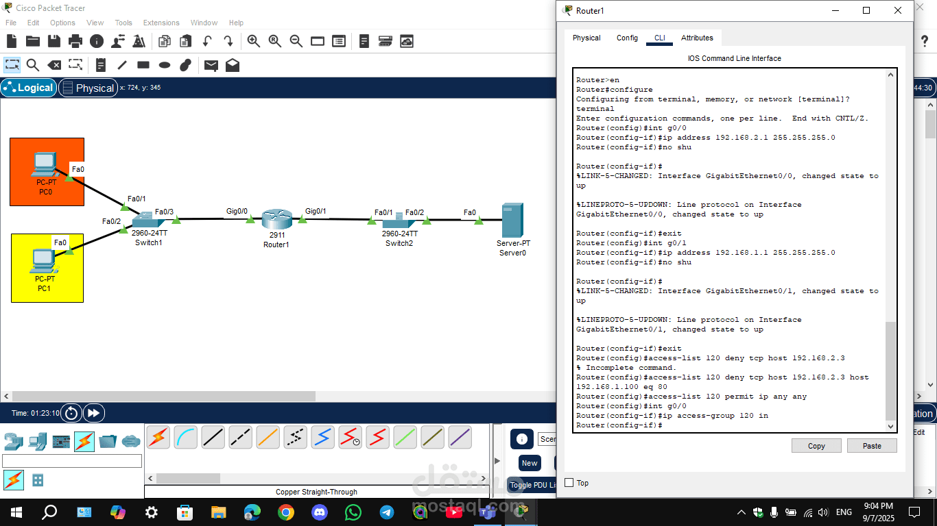This process confirms that the OSPF configuration is correct, the routers are advertising and learning routes properly, and that inter-network communication is possible within the simulated environment.