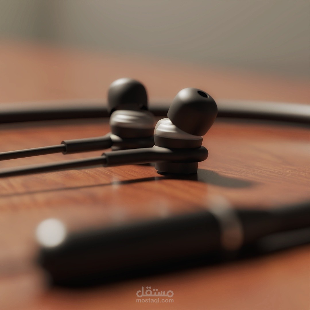 تم التركيز على شكل السماعات، الأزرار، وملمس الخامات لإظهار المنتج بأعلى درجة من الاحترافية.