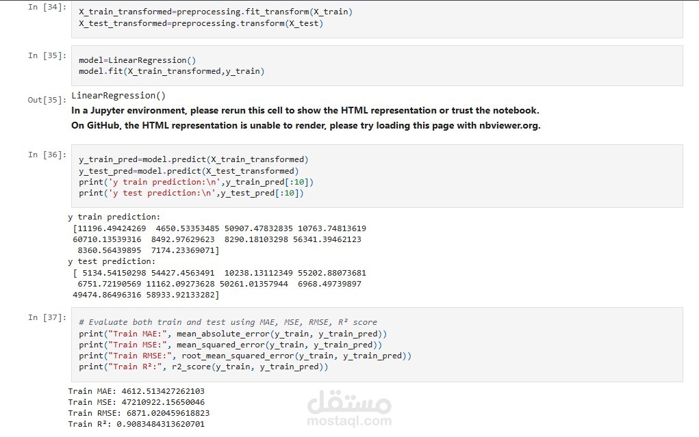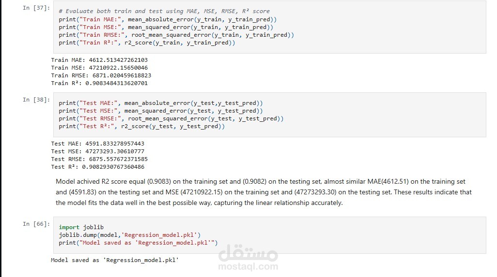 تقييم الأداء: باستخدام مقاييس مثل MAE (متوسط الخطأ المطلق) و RMSE (الجذر التربيعي للخطأ المتوسط).