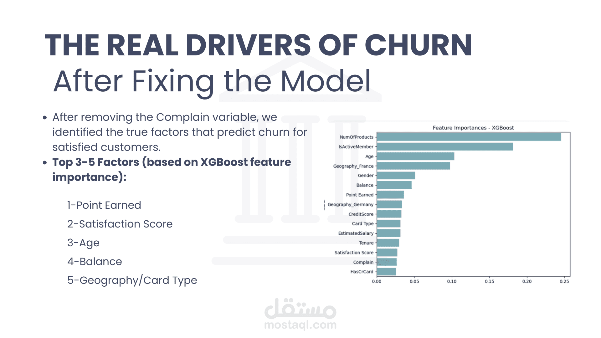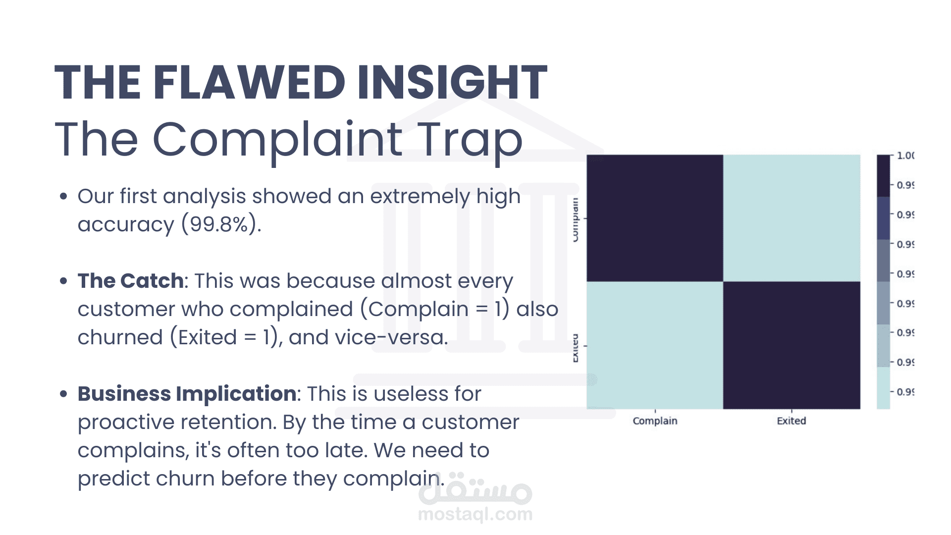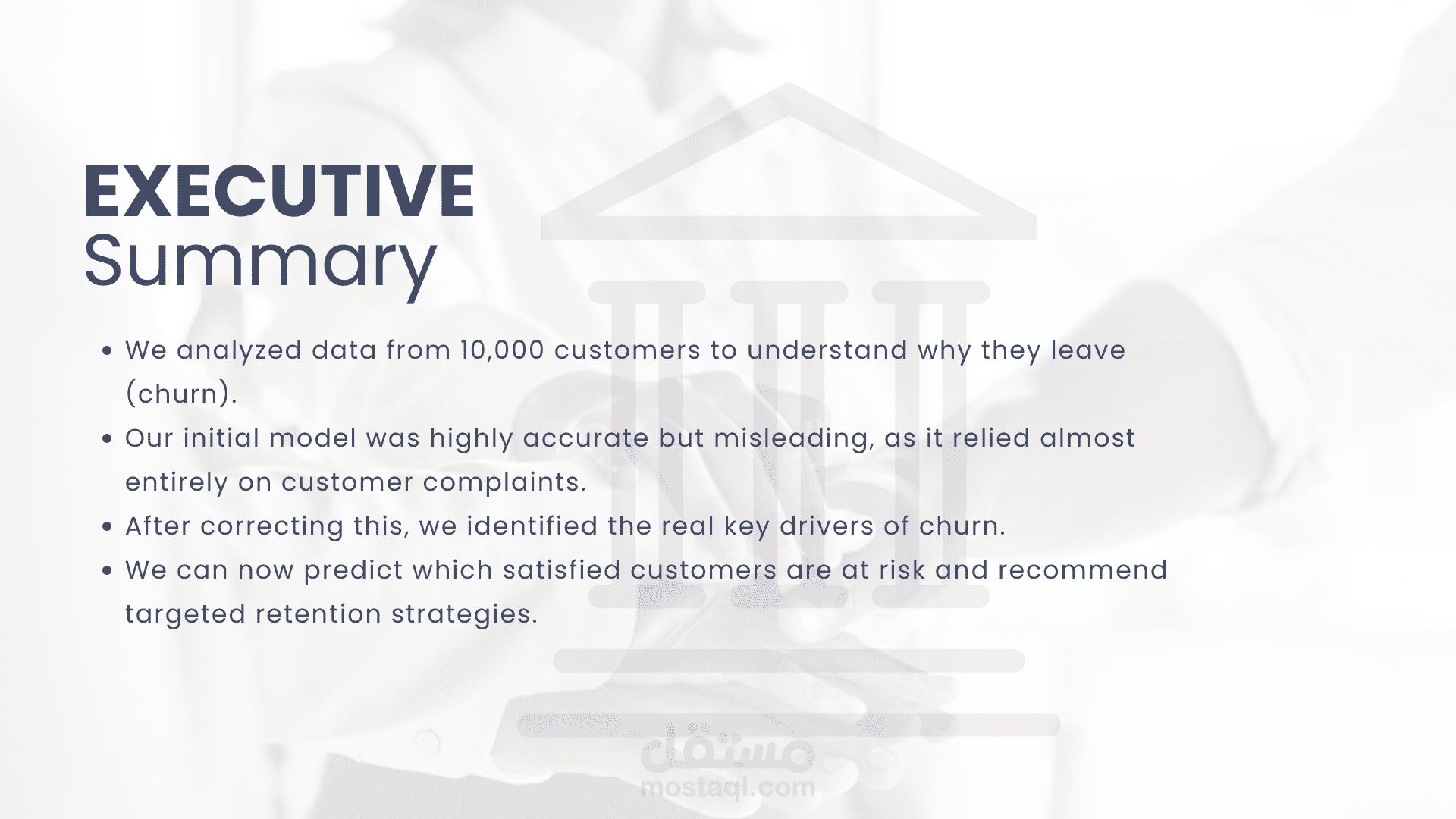وجهة نظر البزنس: بيوضح insights تساعد إدارة البنك في تقليل فقدان العملاء.