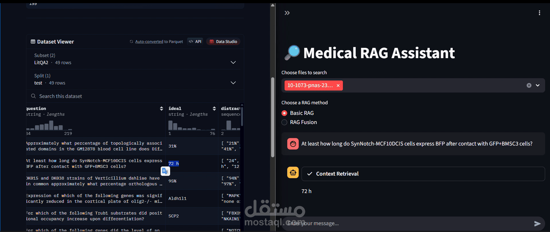 صممت وطوّرت مساعد ذكاء اصطناعي متخصص في المجال الطبي للإجابة عن الأسئلة، باستخدام RAG (Retrieval-Augmented Generation) pipeline.