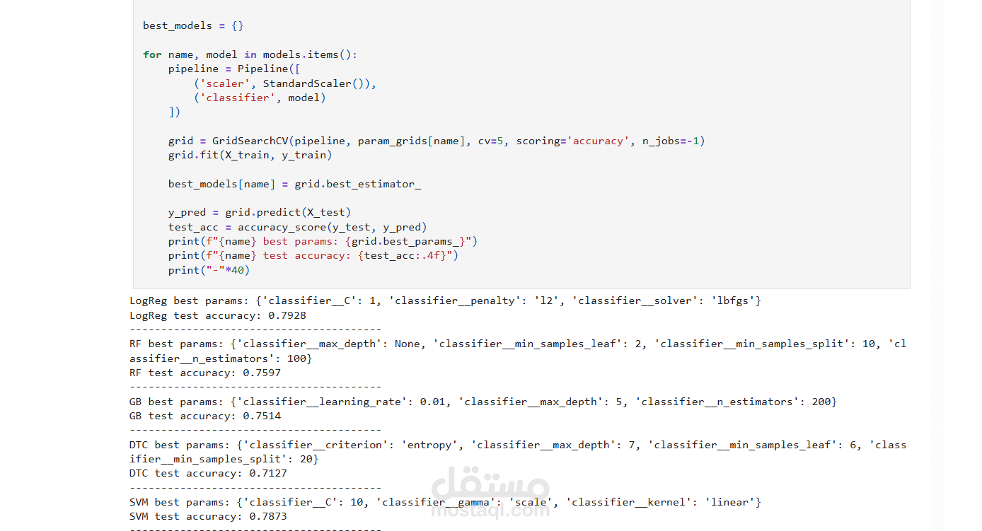 تحسين النماذج: استخدام GridSearchCV لضبط المعاملات.