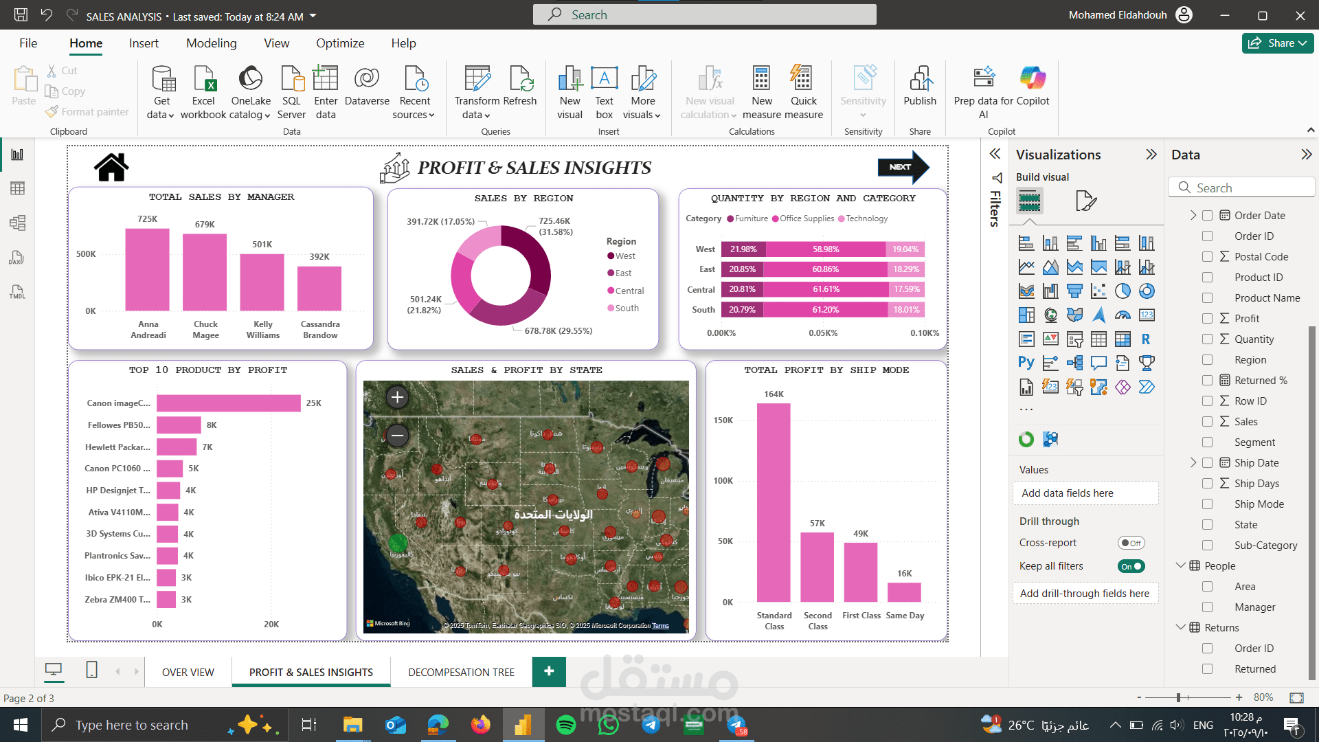 - تحليل الأرباح حسب المناطق والفئات.